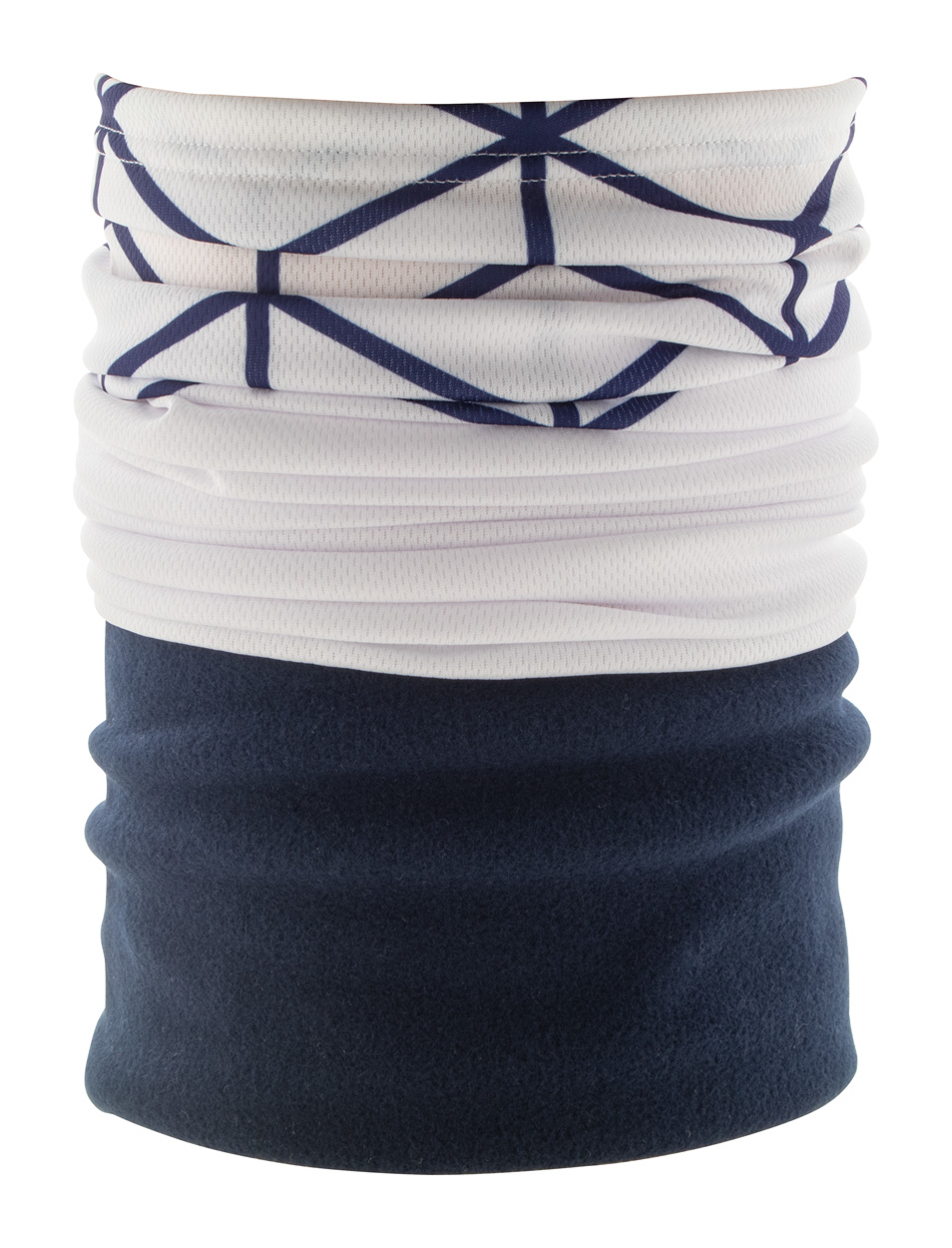Individueller Multifunktionsschal aus atmungsaktivem und schnell trocknendem Polyester mit farbigem Polarfleece-Halswärmer. Der Preis ist inkl. vollflächigem Sublimationsdruck auf dem Polyesterteil. Material: 100 % Polyester (135 g / m²) und Polarfleece (160 g / m²). Mindestmenge: 100 Stk.