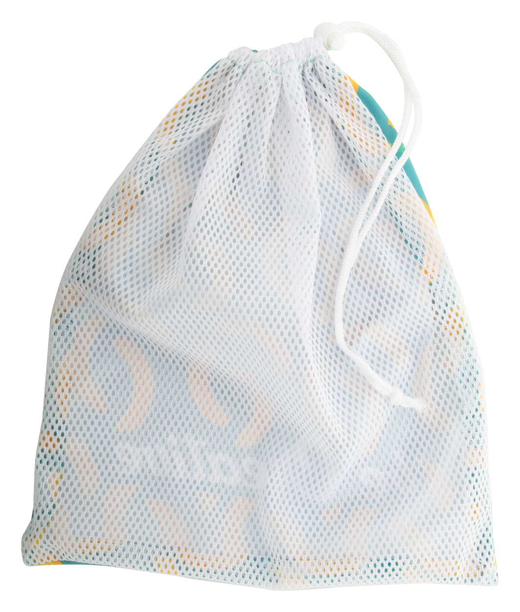 Individueller Obst- / Gemüsebeutel aus Polyester, mit Netz auf der Vorderseite und Zugkordelverschluss. Der Preis ist inkl. vollflächigem Sublimationsdruck auf der Rückseite. Mindestmenge: 50 Stk.