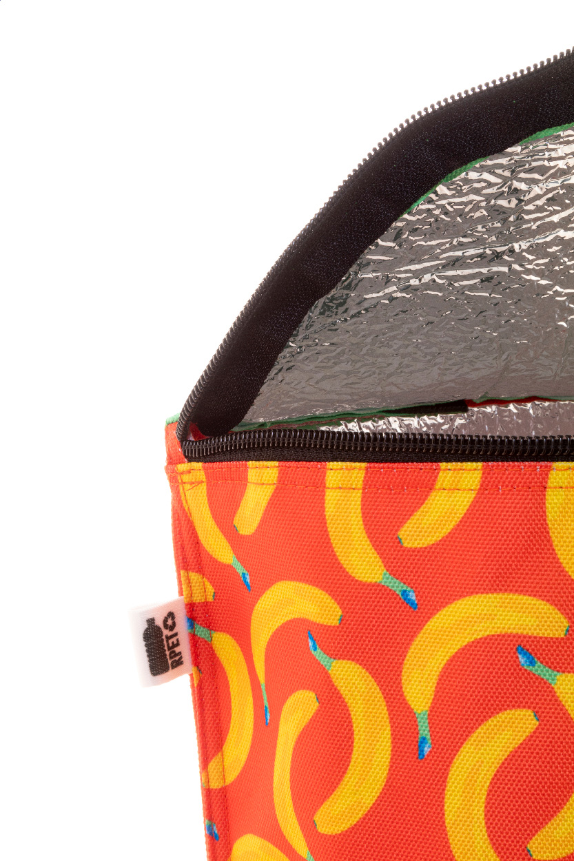 Individueller Kühlrucksack aus 600D RPET Polyester mit Reißverschluss, Aluminiumpolsterung und gepolsterten Schultergurten. Inkl. vollflächigem Sublimationsdruck und RPET Label. Mindestmenge: 25 Stk.