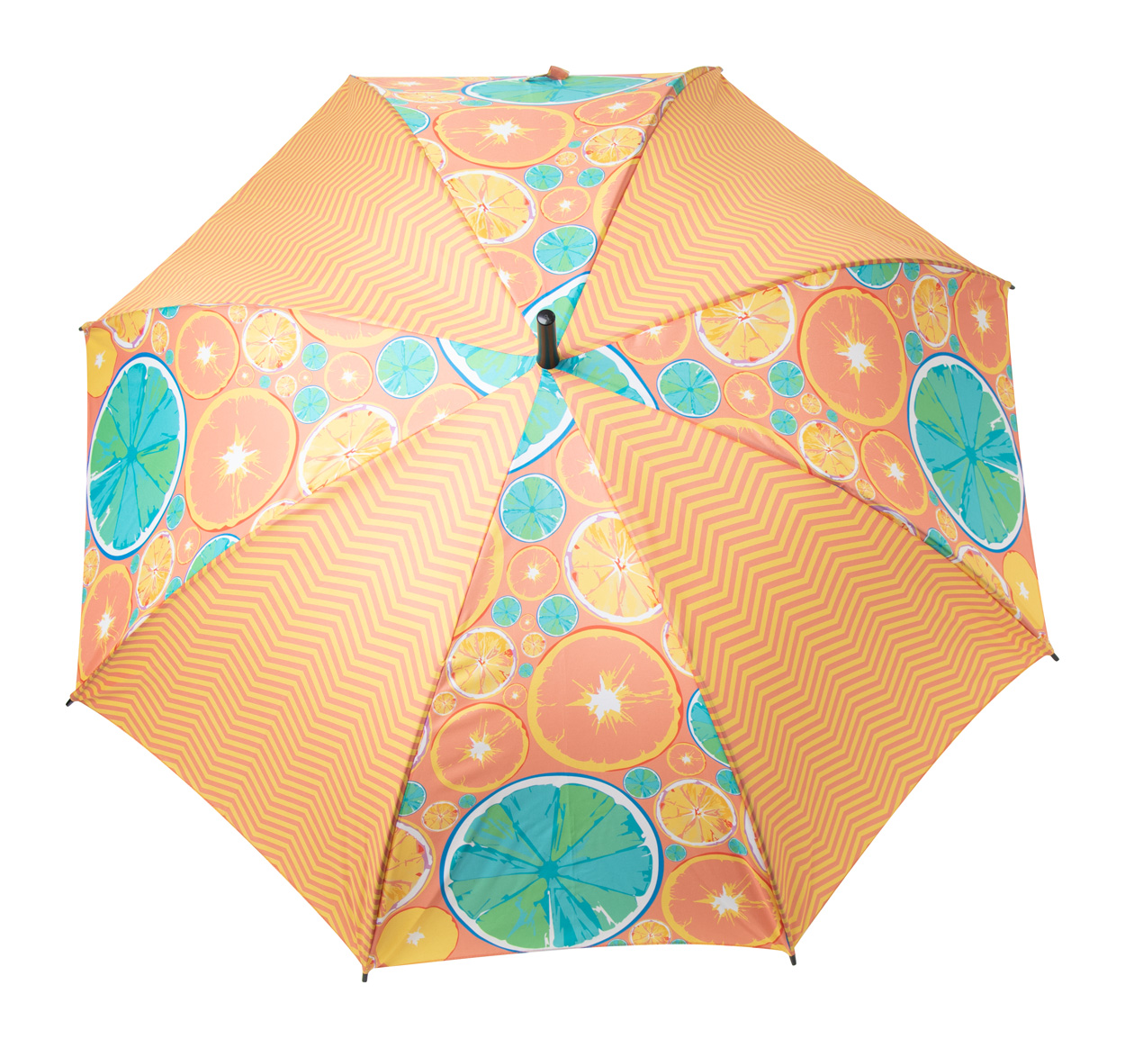 Individueller Automatikregenschirm mit 8 Segmenten. Material: 190T Pongee, Metallstock, Fiberglasspeichen und EVA-Griff. Der Preis ist inkl. Sublimationsdruck auf allen Segmenten. Mindestmenge: 50 Stk.