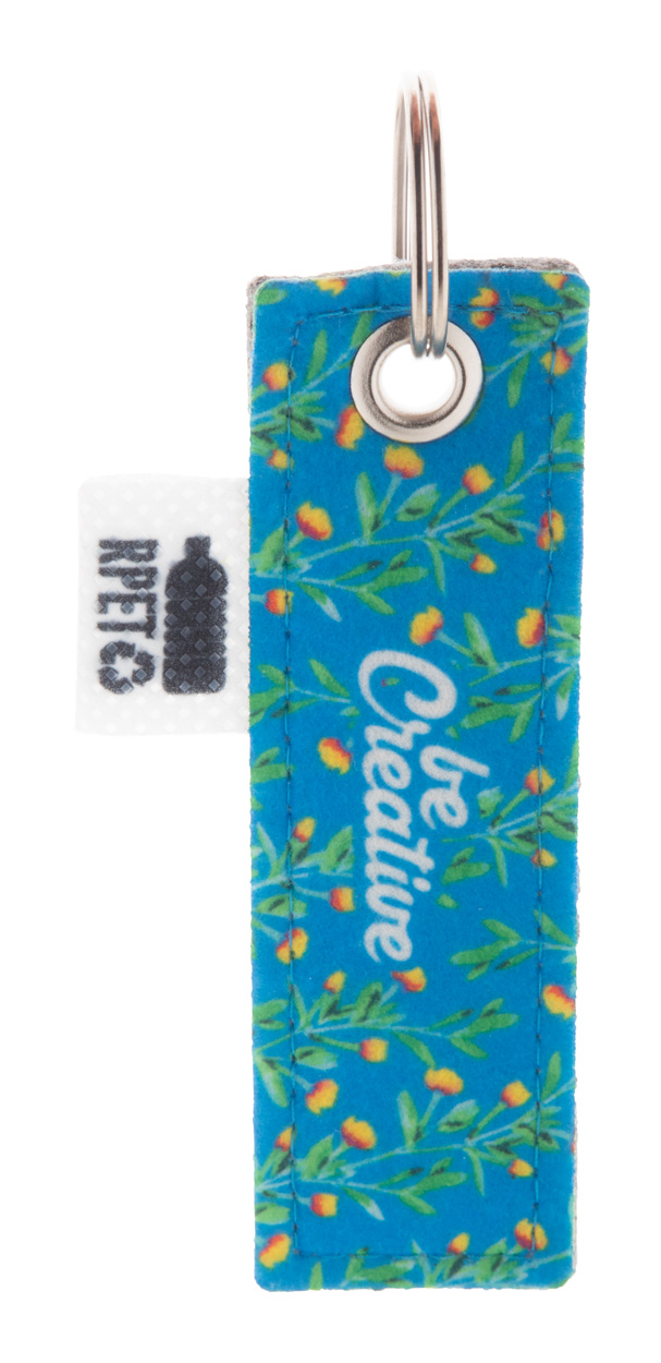 Individueller Schlüsselanhänger aus RPET-Filz it vollfarbiger Bedruckung auf der Vorderseite. Der Preis ist inkl. Sublimationsdruck. Mit RPET Label. Mindestmenge: 100 Stk.