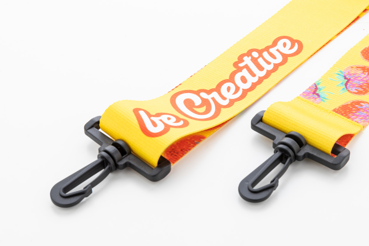 Individueller, längenverstellbarer Schulterriemen aus Polyester mit Kunststoffkarabinern. Mit beidseitigem Sublimationsdruck. Geeignet für Umhängetaschen, Dokumententaschen oder Sporttaschen. Mindestmenge: 50 Stk.
