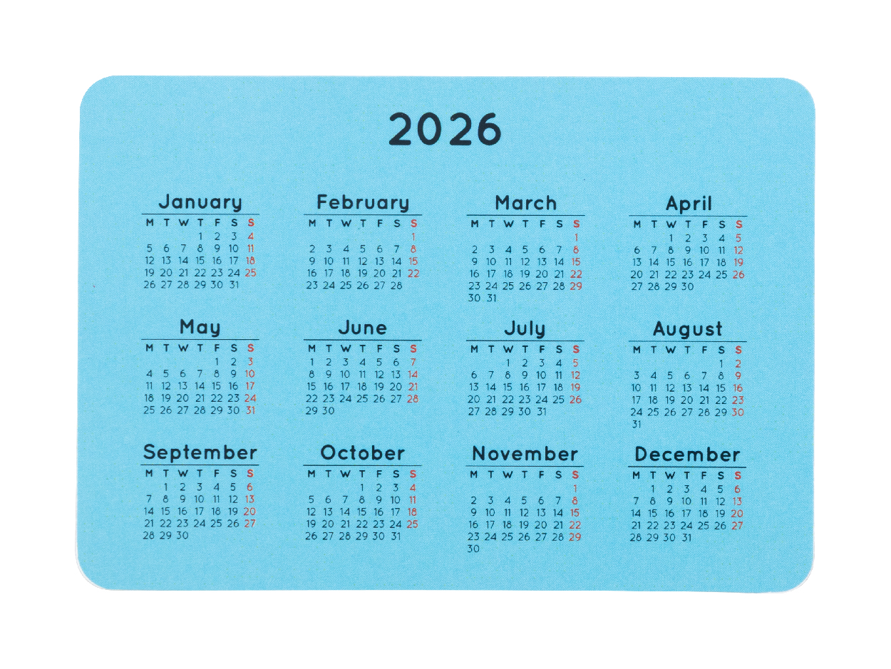 Individueller Taschenkalender aus Papierkarton (270 g / m²). Der Preis ist inkl. beidseitigem Digitaldruck. Mindestmenge: 250 Stk.