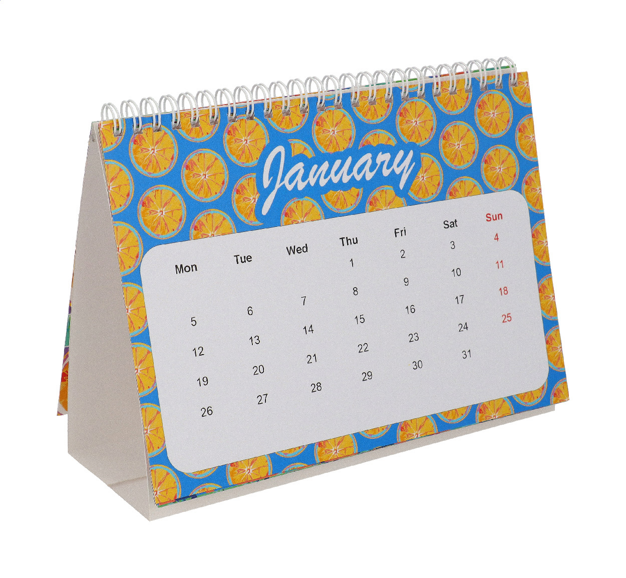 Individueller Tischkalender mit Spiralbindung. Mit 6 doppelseitigen Monatsblättern und einem Deckblatt. Der Preis ist inkl. Digitaldruck auf allen Seiten. Mindestmenge: 100 Stk.