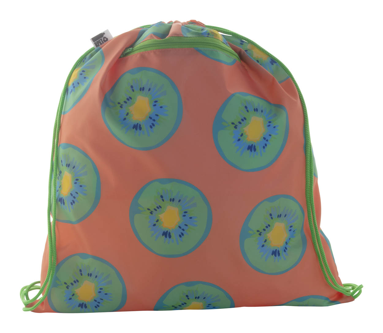 Individueller Turnbeutel mit Zugkordeln, mit Reißverschlusstasche vorne, Material: 190T RPET. Der Preis ist inkl. vollflächigem Sublimationsdruck. Mindestmenge: 25 Stk.
