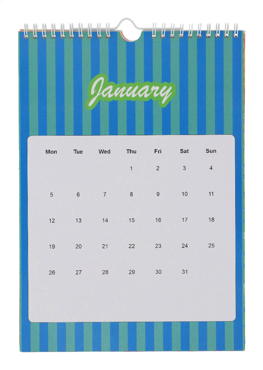 Individueller Wandkalender im A4-Format mit Spiralbindung und Aufhängehaken. Mit 6 doppelseitigen Monatsblättern und einem Deckblatt. Der Preis ist inkl. Digitaldruck auf allen Seiten. Mindestmenge: 100 Stk.