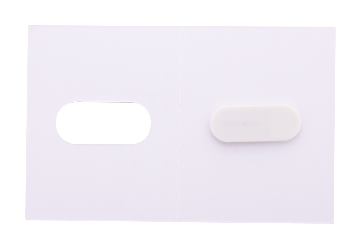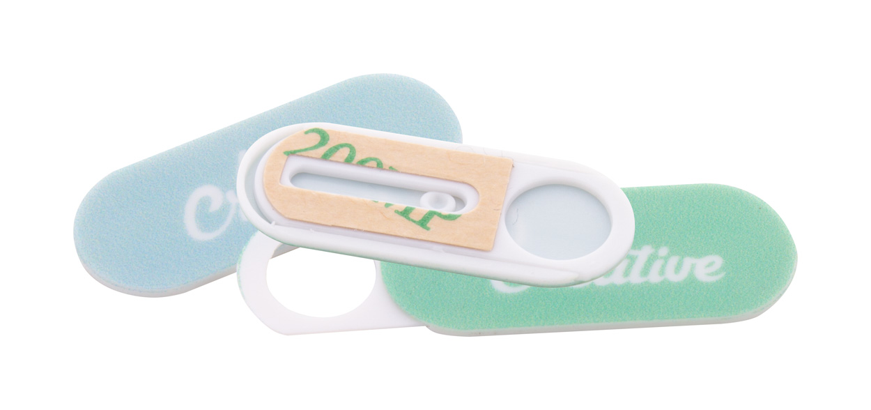Individueller, vollfarbig bedruckter Webcam-Blocker aus Kunststoff mit verschiebbarer Abdeckung und selbstklebender Rückseite. Mit digital bedruckter Trägerkarte. Der Preis ist inkl. Digitaldruck (Trägerkarte rundum) und UV-LED-Druck (Webcamblocker). Mindestmenge: 100 Stk.