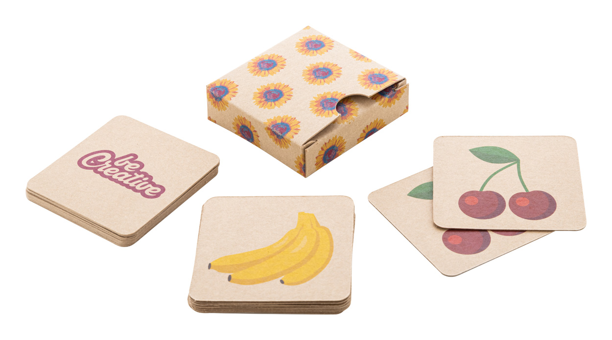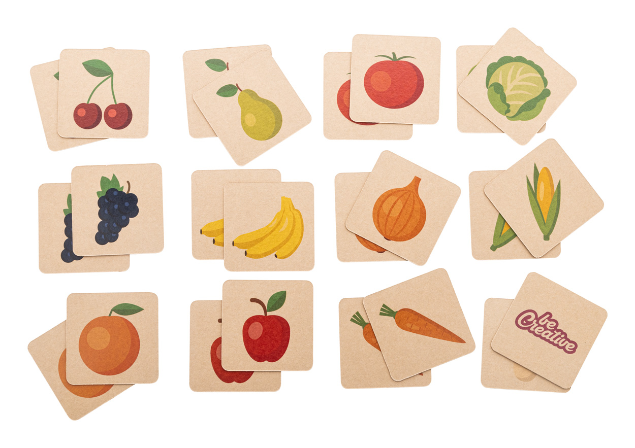 Memory-Spiel aus Kraftpapier in Individueller Kraftpapierschachtel, mit 24 Kärtchen (55 x 55 mm). Der Preis ist inkl. Logodruck auf der Rückseite aller Kärtchen sowie eine vollfarbig bedruckte Schachtel. Mindestmenge: 250 Stk.