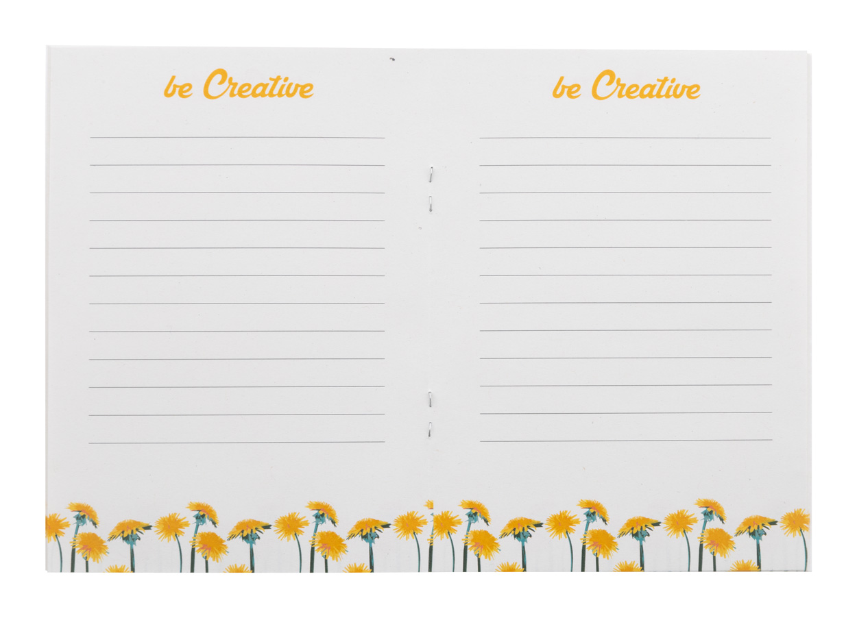 Individuell gestaltetes Notizbuch mit Saatgutpapierbezug und 32 Blättern aus Recyclingpapier im Format A6. Der Preis beinhaltet einen vollfarbig bedruckten Außenumschlag und einen identischen Vollfarbdruck auf allen Innenseiten. MOQ: 100 Stück. Mit sortierten Wildblumensamen.