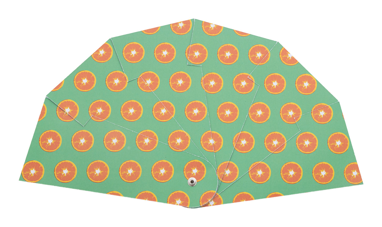 Individueller, faltbarer Handfächer aus Papier mit vollflächigem Digitaldruck. Preis inkl. Digitaldruck auf beiden Seiten. Mindestbestellmenge: 100 Stück.
