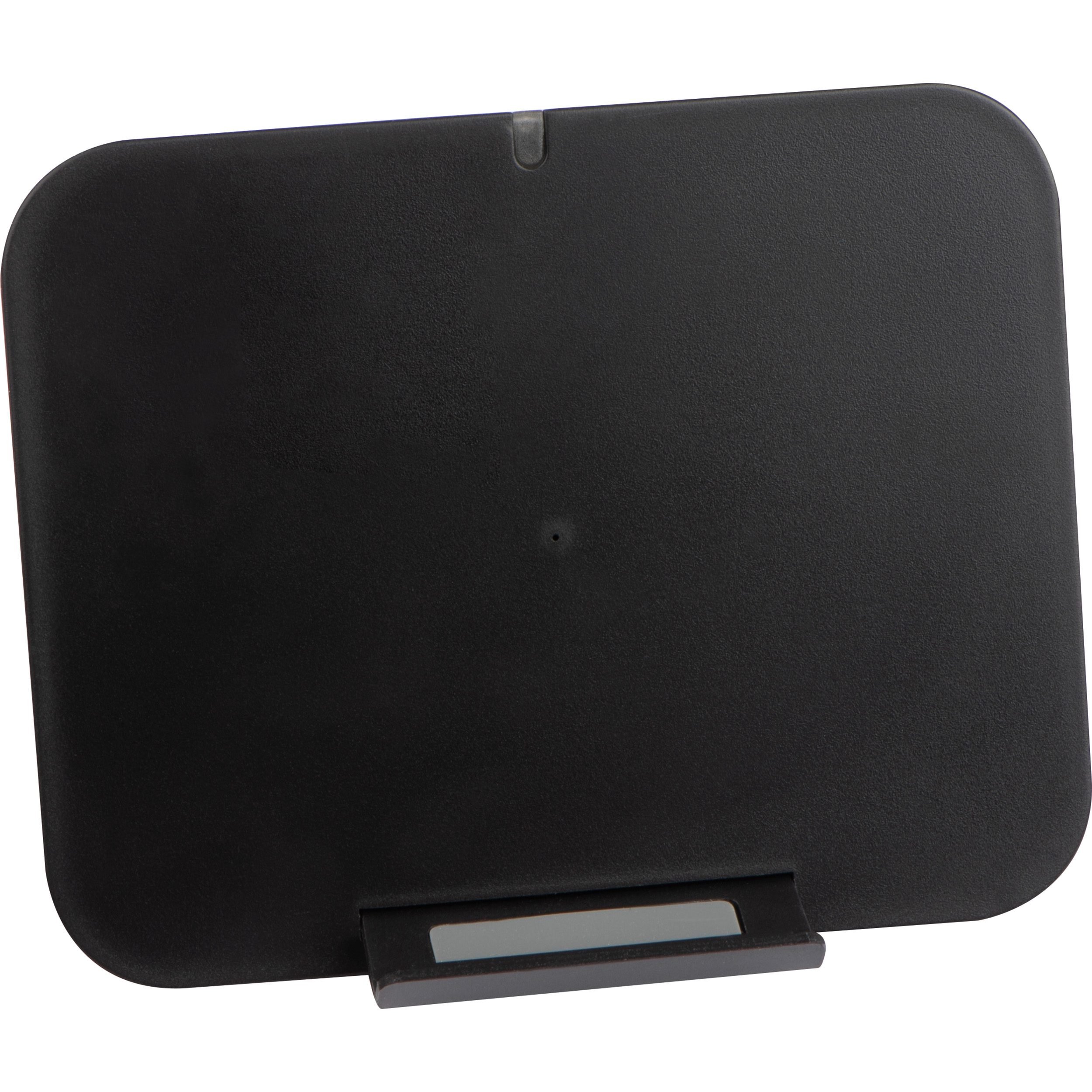 Induktionsladegerät aus Kunststoff, laden Sie Ihr Smartphone einfach ohne Kabelverbindung auf. Der Wireless Charger dient gleichzeitig auch als Ständer für Ihr Smartphone. Die Werbung wird vorne auf das Induktionsladegerät gedruckt.