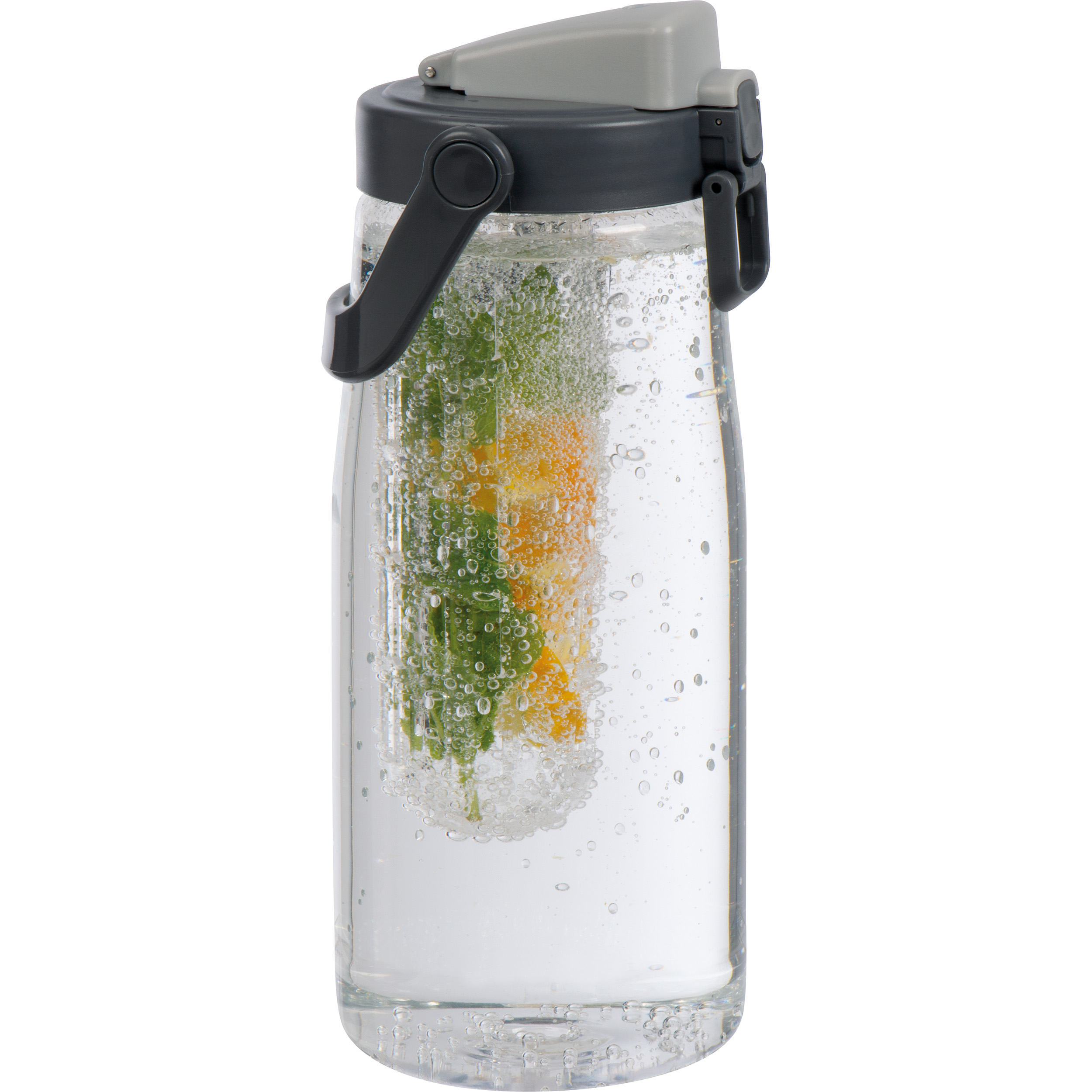 Großer, auslaufsicherer Getränkespender aus Tritan mit Siebeinsatz z. B. für Früchte, verschließbarem Ausgießer, Tragehenkel und einem Füllvermögen von 2500 ml. Ihre Werbung drucken wir im unteren Bereich.