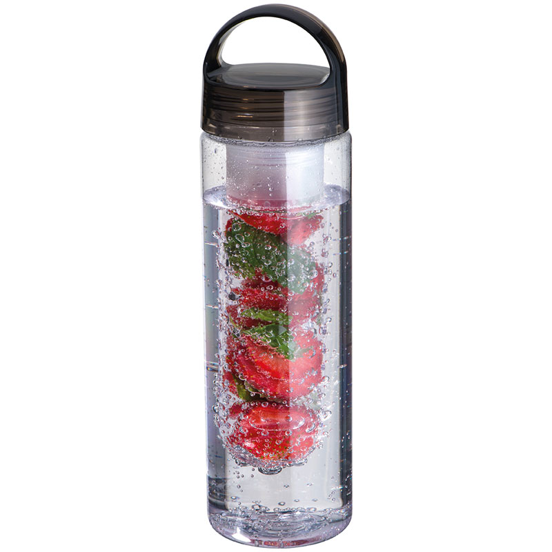 Auslaufsichere Trinkflasche mit einem Siebeinsatz für z. B. Früchte und einem Fassungsvolumen von 650 ml (BPA-FREI). Ihre Werbung drucken wir auf die Flasche.