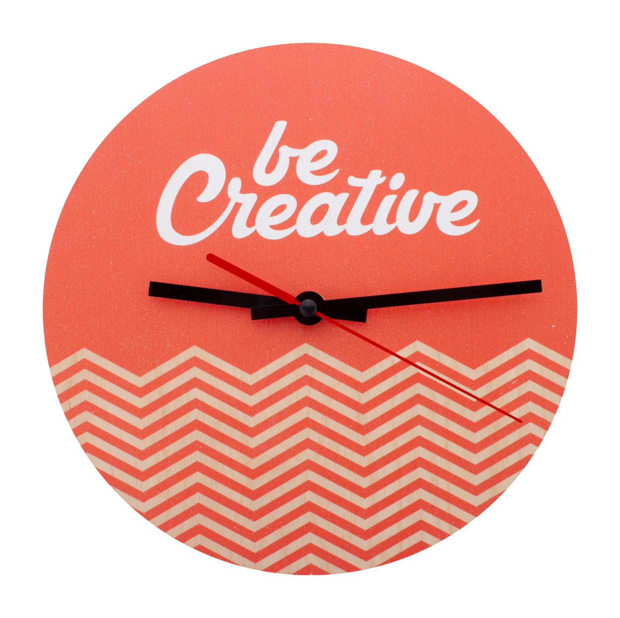 Individuelle, runde Wanduhr aus Birkensperrholz mit individueller Bedruckung. Exkl. Batterie (1x AA). Mindestmenge: 50 Stk.