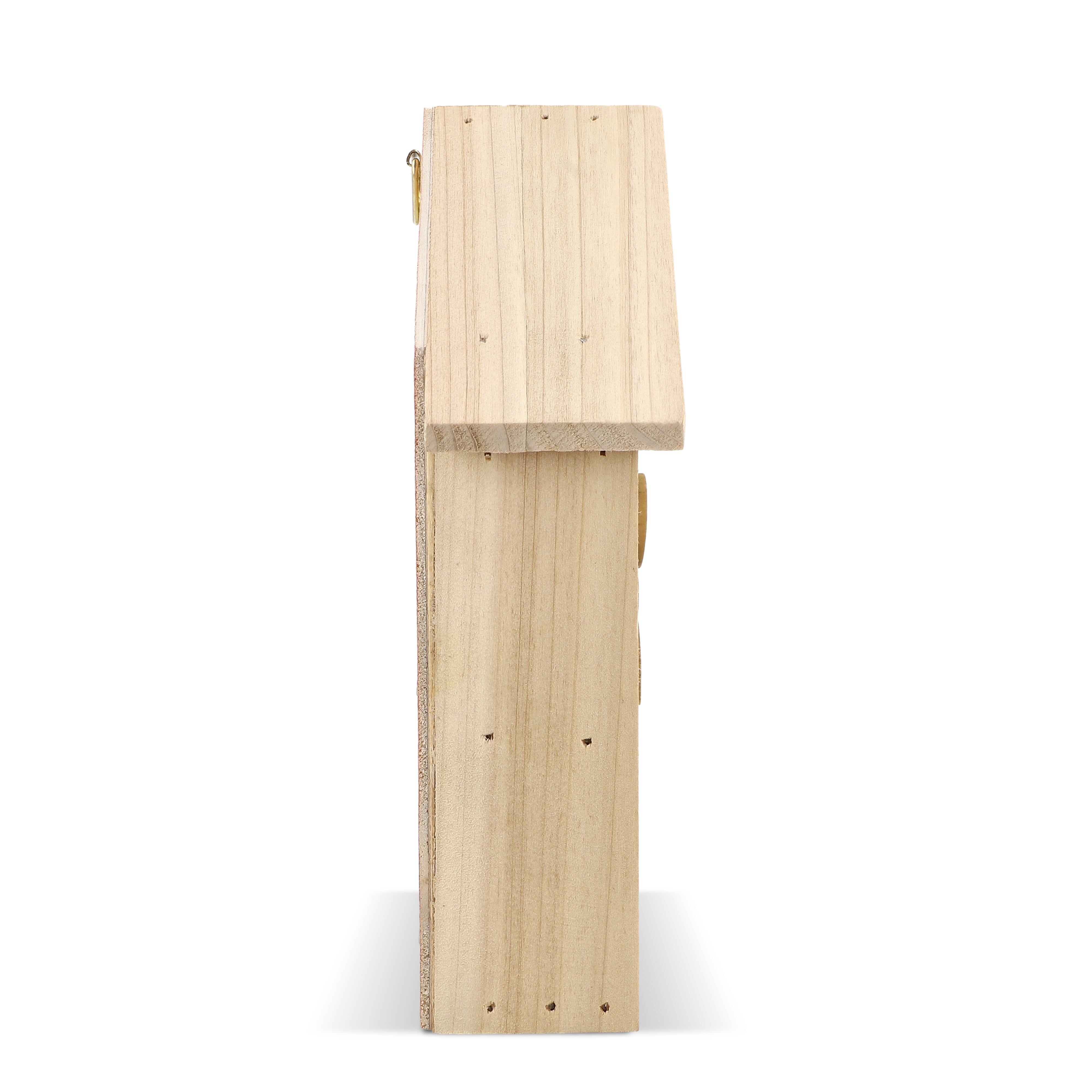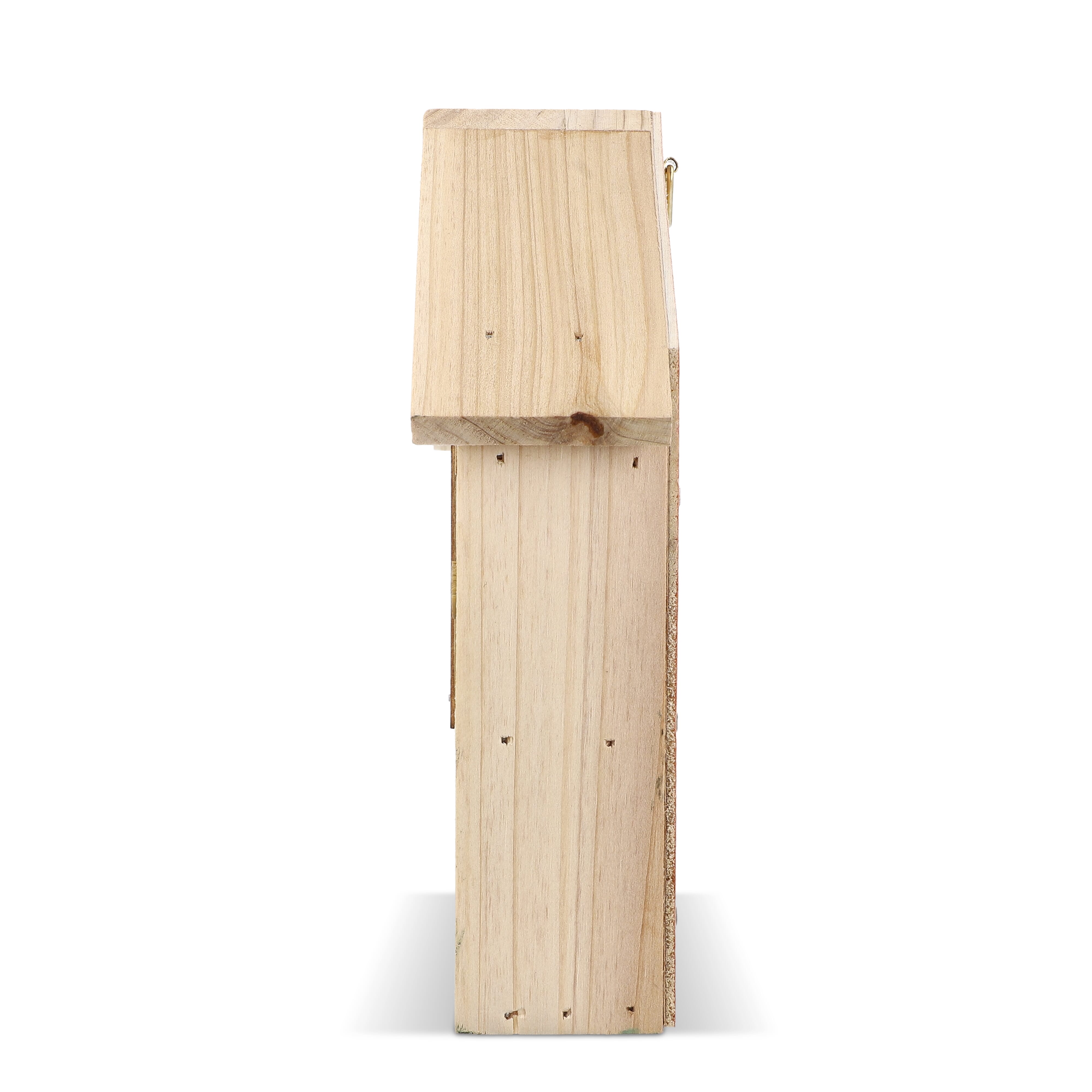 FSC-zertifiziertes Insektenhotel aus Holz, das Marienkäfern, Florfliegen und Solitärbienen Schutz bietet. Fördert die Artenvielfalt durch Bestäubung und natürliche Schädlingsbekämpfung. Ideal für Gärten und Balkone, nachhaltig und lehrreich zugleich – ein durchdachtes Werbegeschenk.