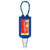 Praktische Kosmetikflasche zum Anhängen! Das Fläschchen mit Silikonhülle ist nicht nur optisch ein echter Hingucker! Raffiniert mit Schlaufe zum Anhängenan den Gürtel, an den Rucksack oder an den Werkzeugkoffer. 50 ml Flasche und...