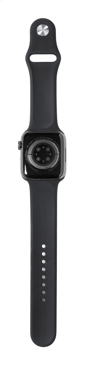 Multifunktionale kabellose Smartwatch im Metallgehäuse mit 1,69"-LCD-Touchscreen, 180-mAh-Akku und TPU-Armband. Sie verfügt über mehrere Gesundheitsüberwachungs- und intelligente Funktionen, wie z. B. Herzfrequenz-, Blutdruck- und Sauerstoffmessung, drahtlose Anrufe, Wettervorhersage und Schlafüberwachung neben vielen anderen. Kann mit einer kostenlosen App, die für iOS und Android verfügbar ist, mit Smartphones verbunden werden. Inklusive magnetischem kabellosem Ladegerät mit USB-Kabel.