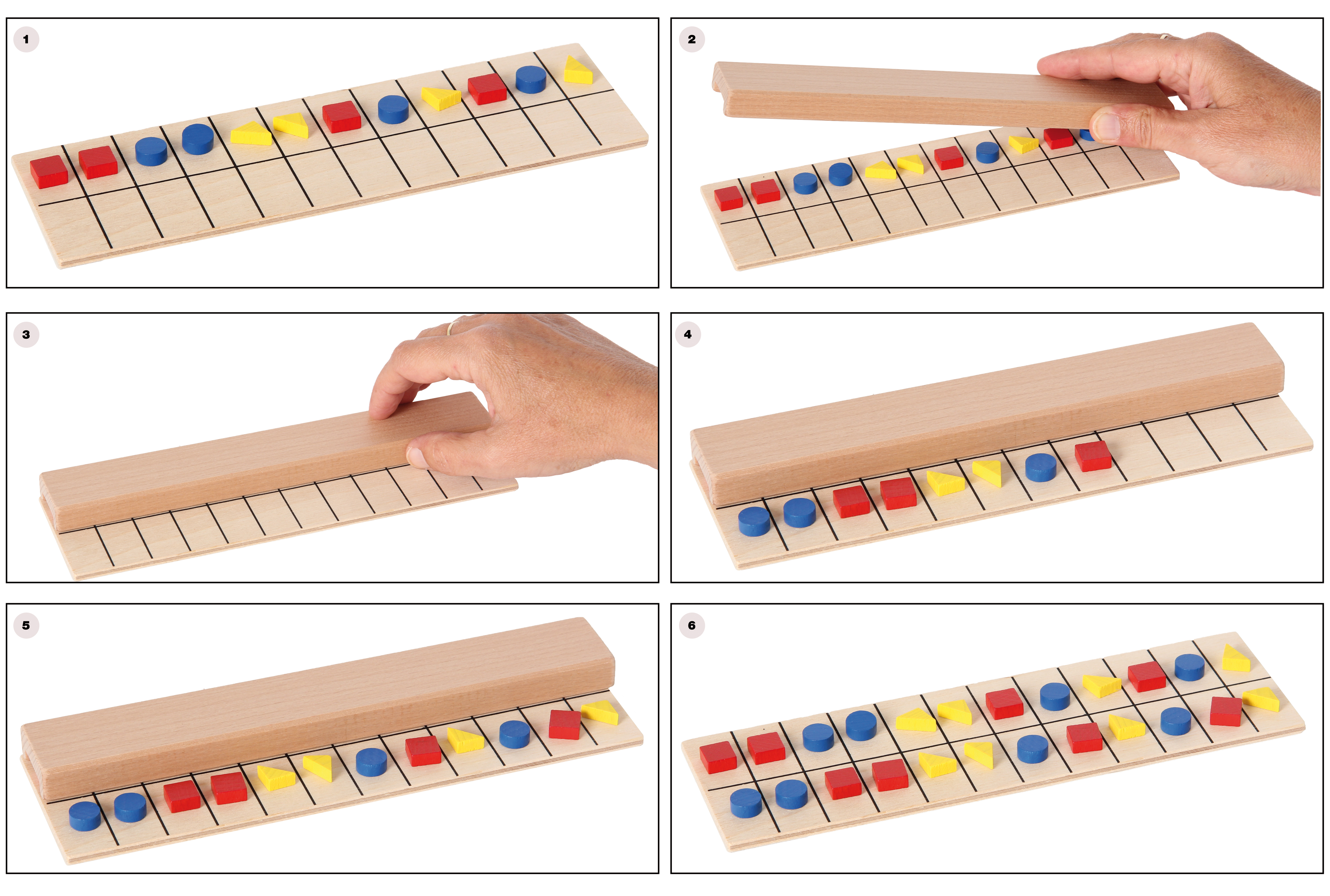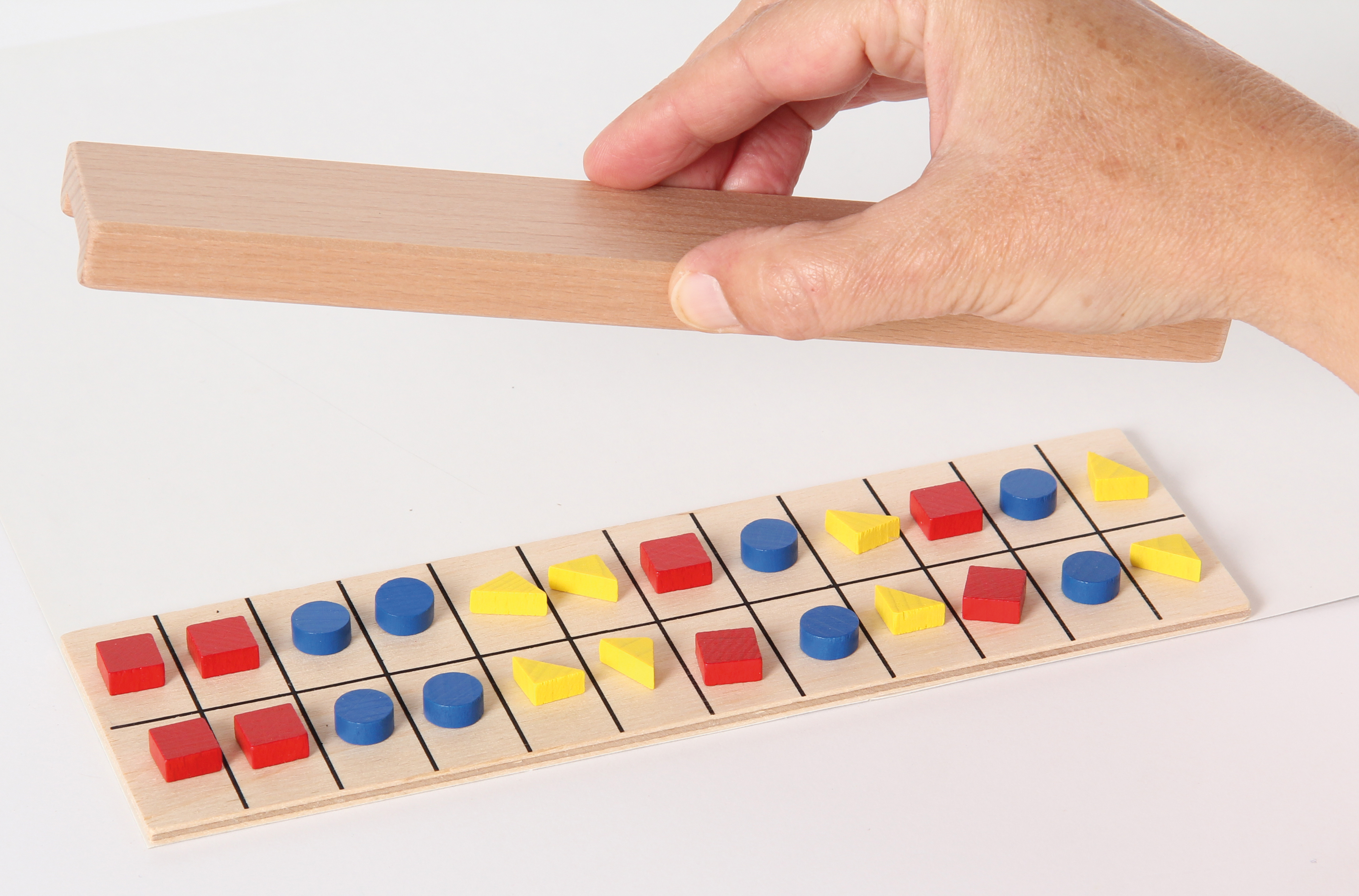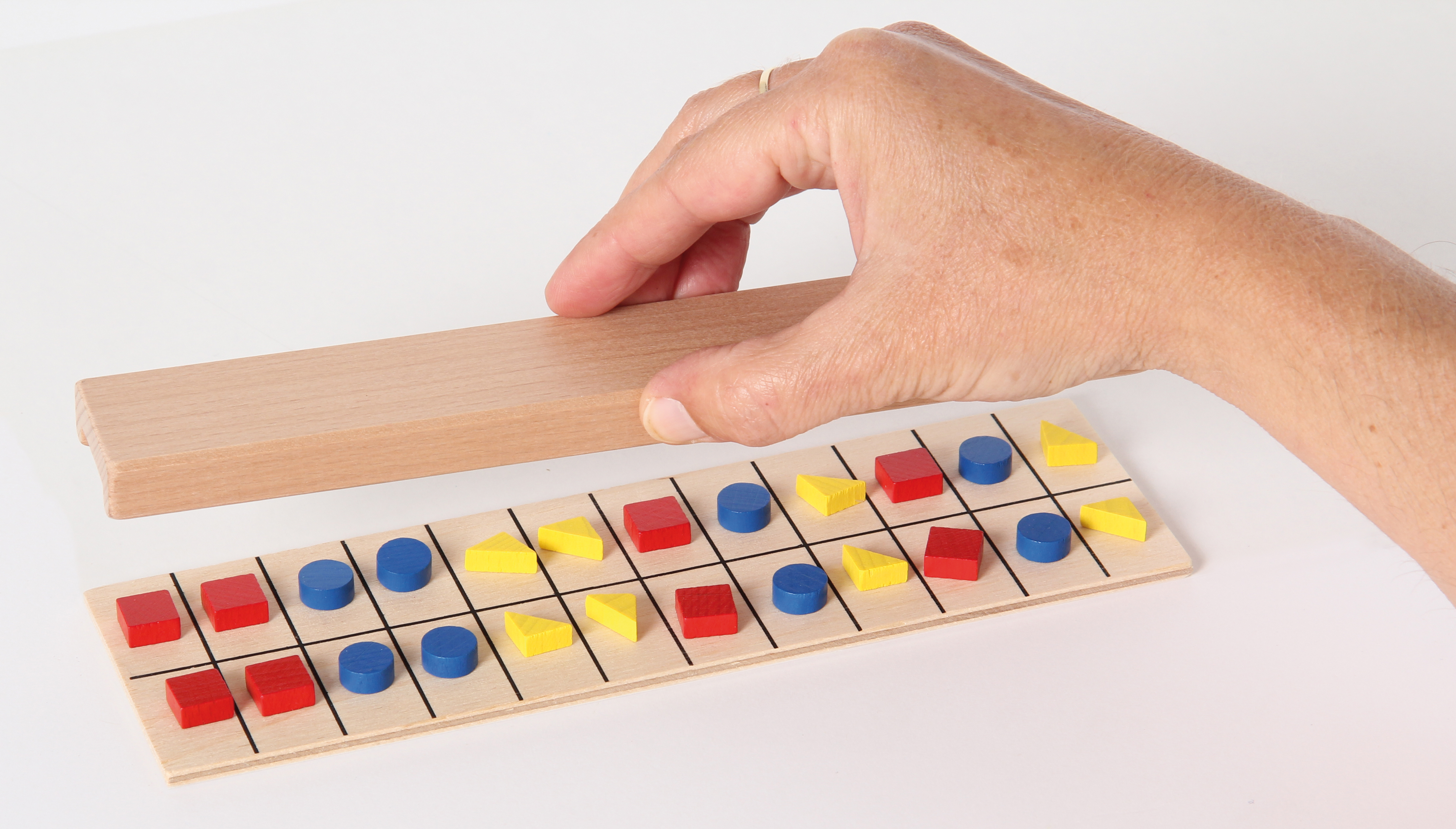 Spielerisches Gedächtnistraining für Klein und Groß. Ein Spieler legt eine beliebige Reihe verschiedener Steine. Der andere darf diese kurz sehen und versucht dann, die Reihe nachzulegen.