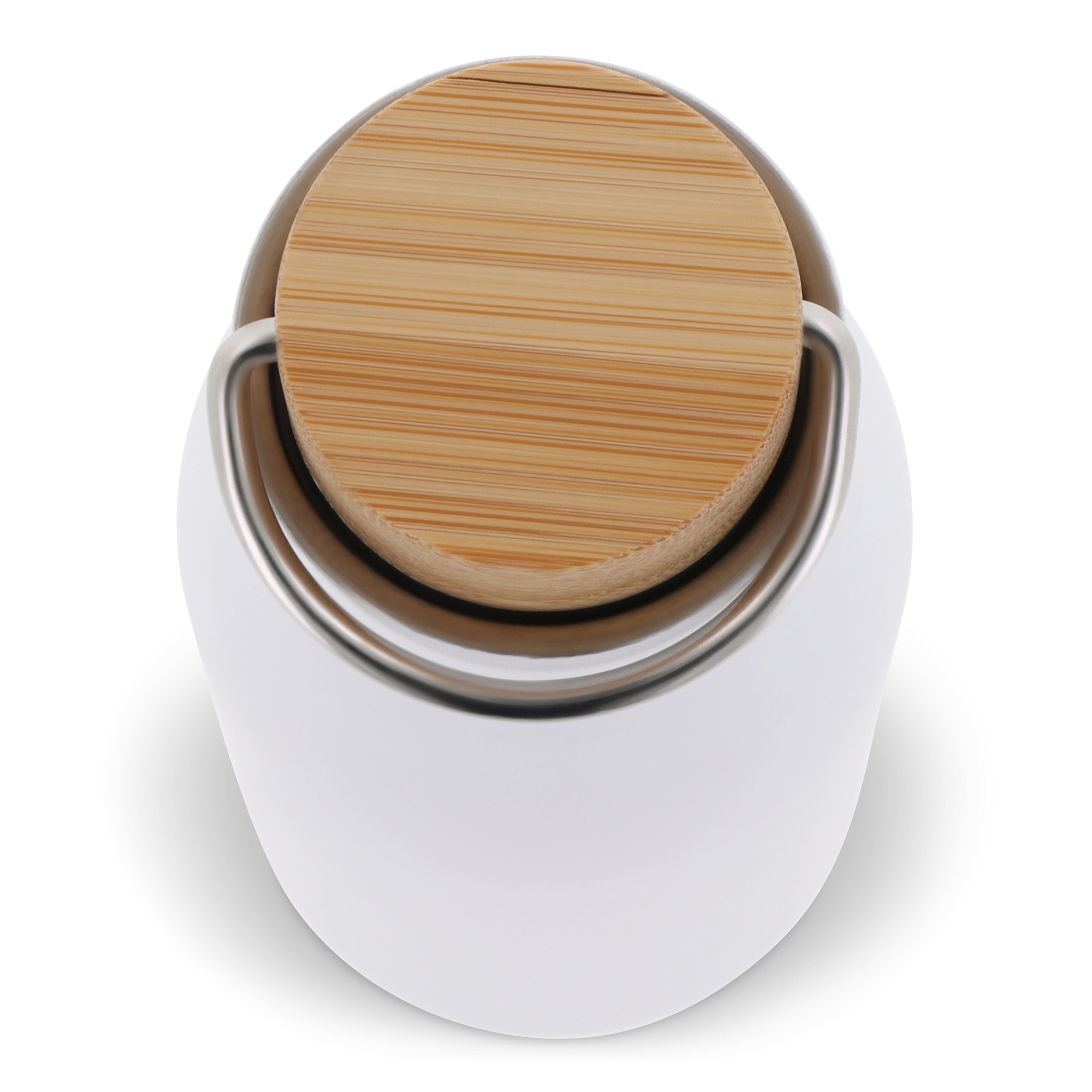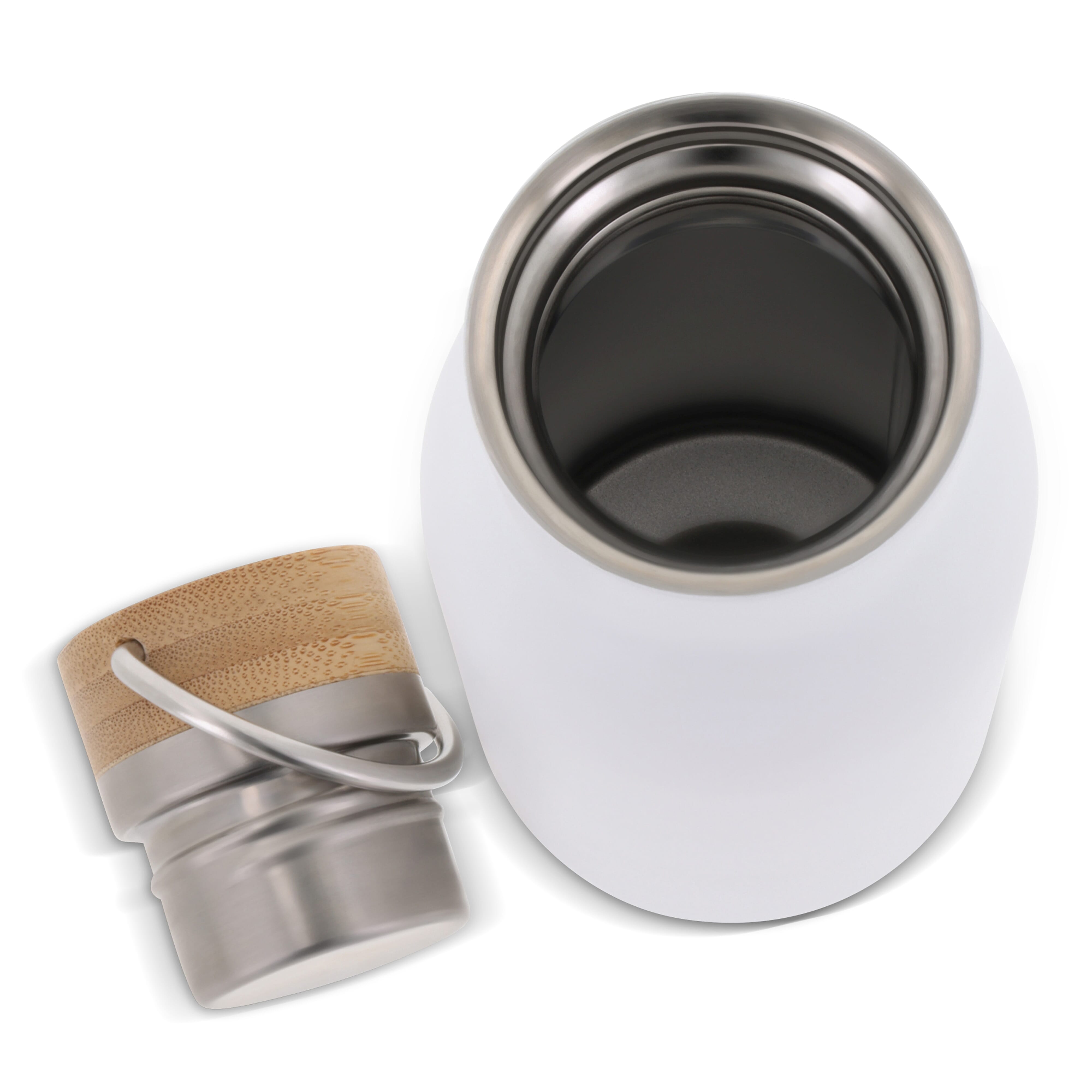 Doppelwandige Flasche 'Arima', weiß, Bambusstopfen