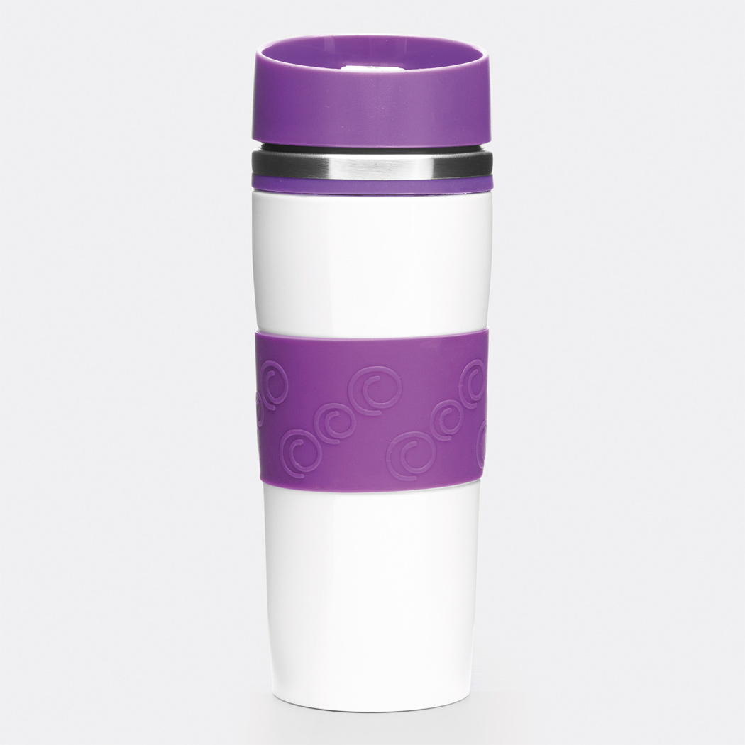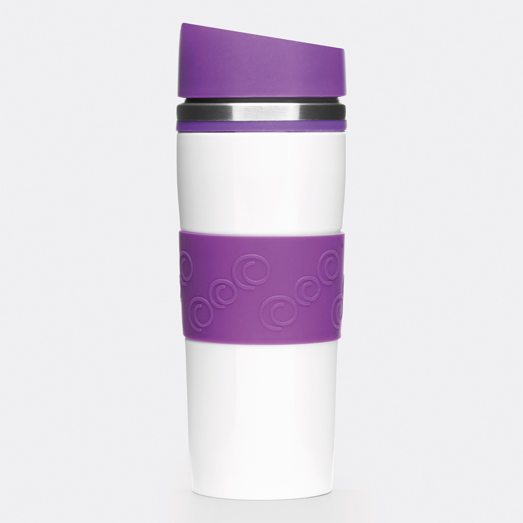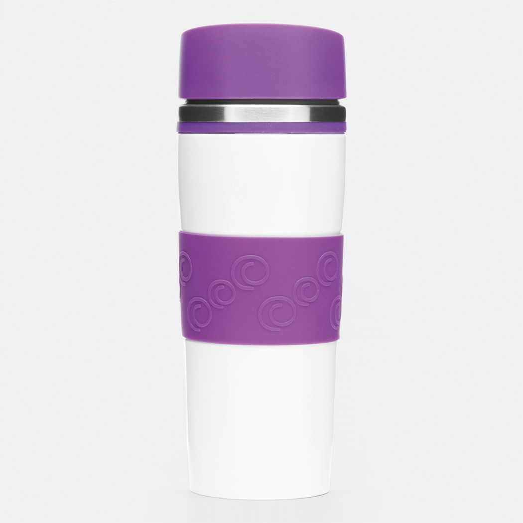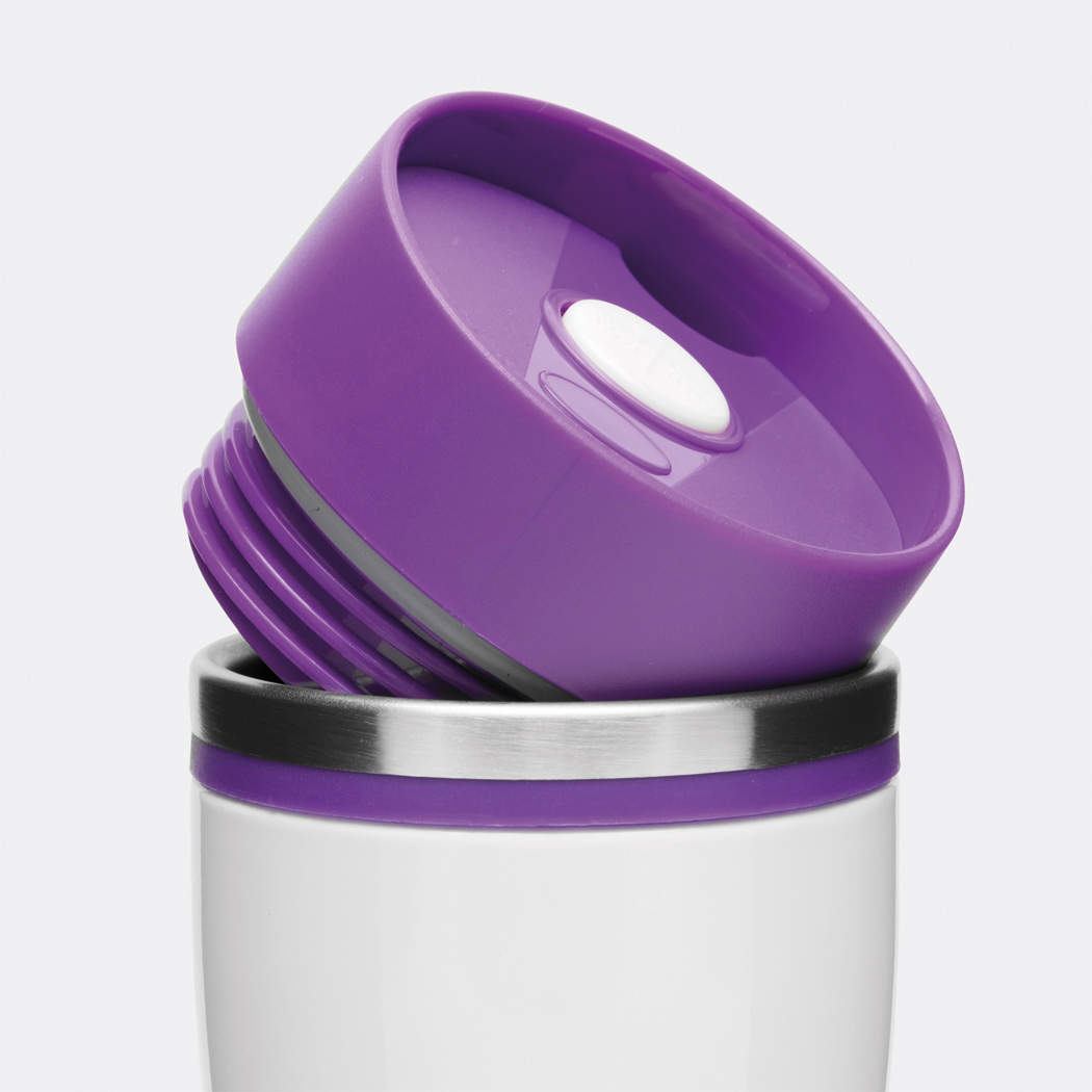 Isolierbecher ARABICA, doppelwandig: innen und außen aus Edelstahl, farbig abgesetzter Kunststoff-Deckel mit sicherem Schraubverschluss, Push-Button OPEN / CLOSE und integrierter Trinköffnung, farbige Silikon-Manschette für optimale Griffigkeit, gummierter Standfuß für gute Bodenhaftung, Füllmenge ca. 400 ml