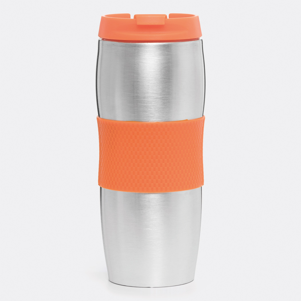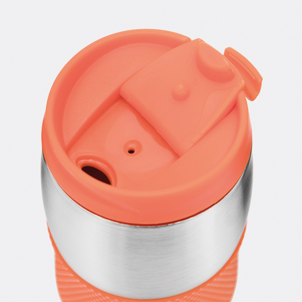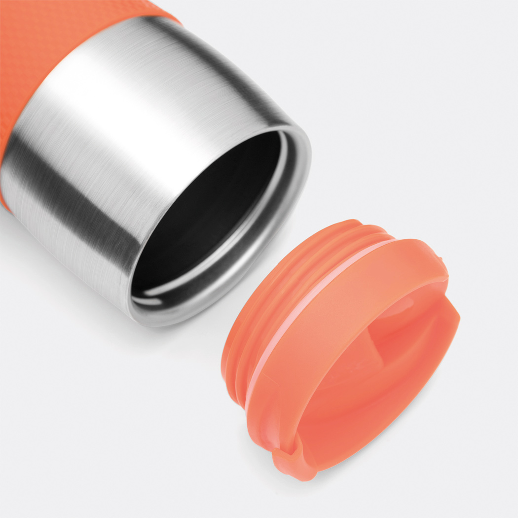Isolierbecher AU LAIT, doppelwandig: innen und außen aus Edelstahl, farbig abgesetzter Kunststoff-Deckel mit sicherem Schraubverschluss und integrierter Trinköffnung zum Aufklappen, farbig-gummierte Manschette für optimale Griffigkeit sowie gummierter Standfuß für gute Bodenhaftung, Füllmenge ca. 380 ml, in Geschenkbox