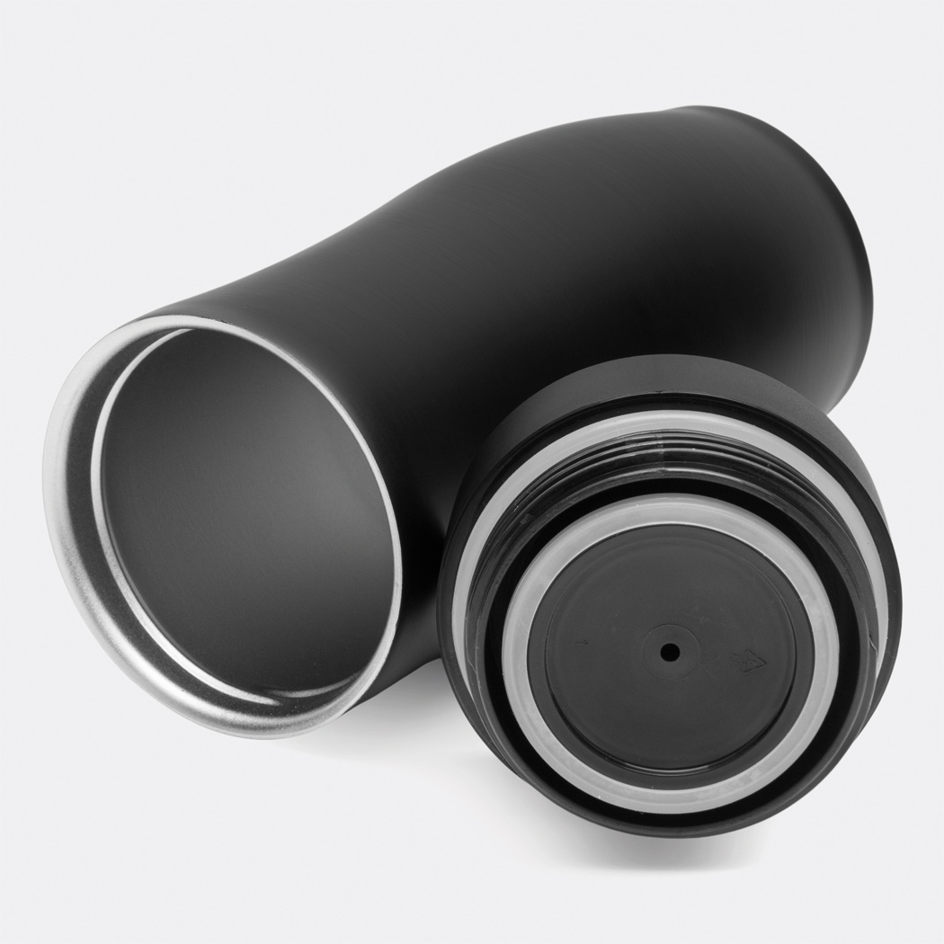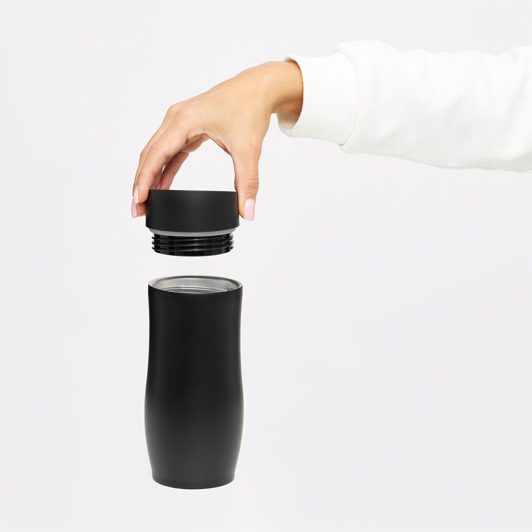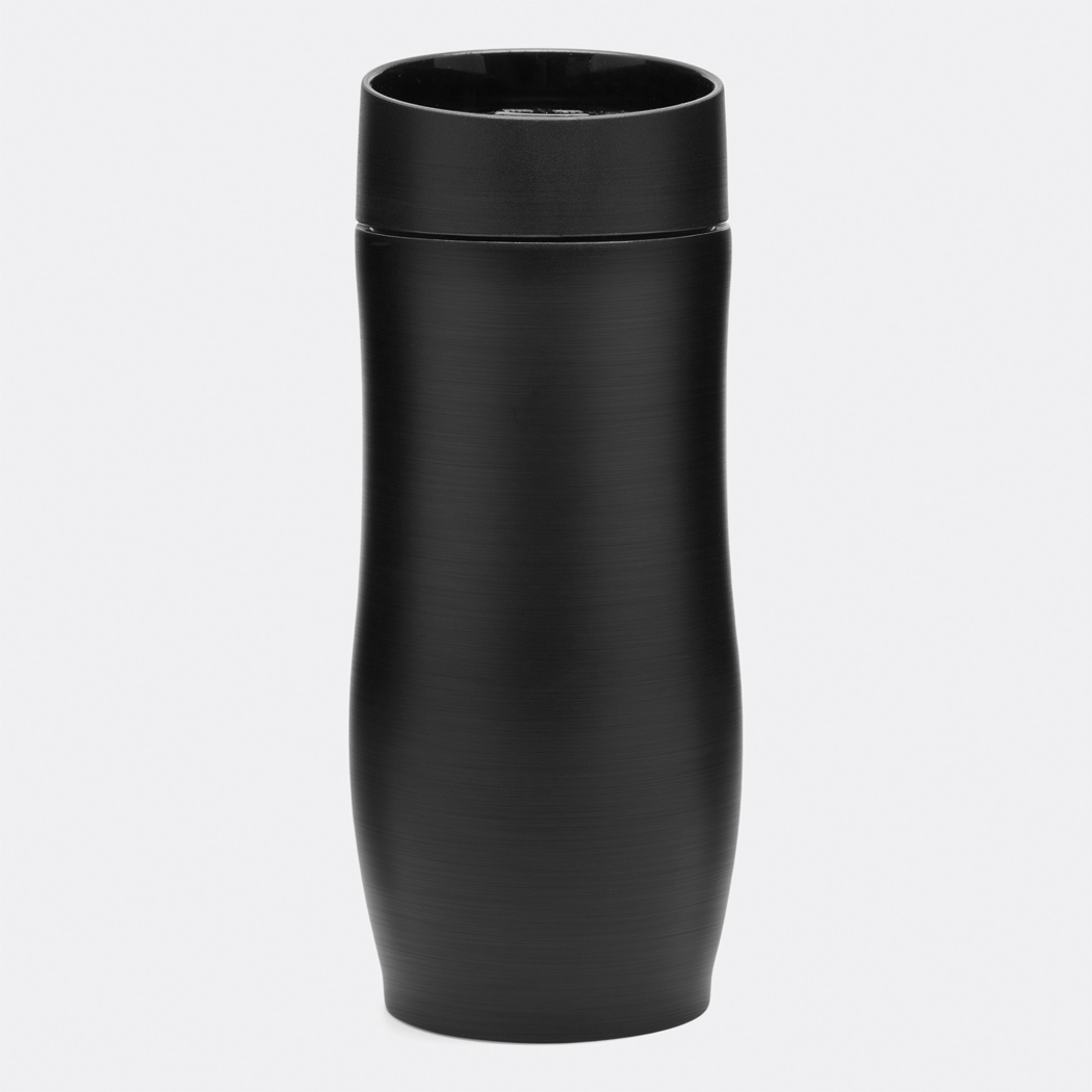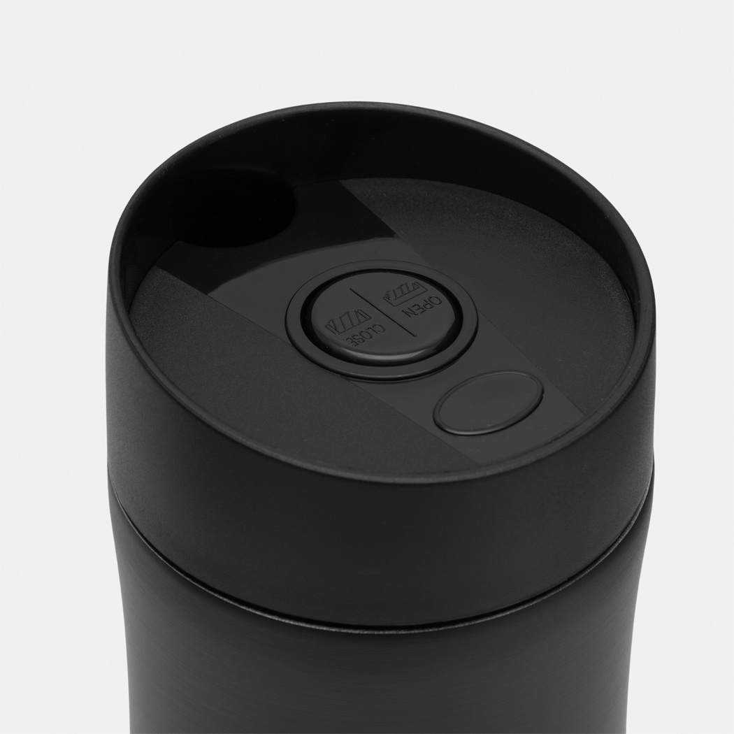 Isolierbecher CLASSICO, doppelwandig: innen und außen aus Edelstahl, Kunststoff-Deckel mit sicherem Schraubverschluss, Push-Button OPEN / CLOSE und integrierter Trinköffnung, gummierter Standfuß für gute Bodenhaftung, Füllmenge ca. 380 ml