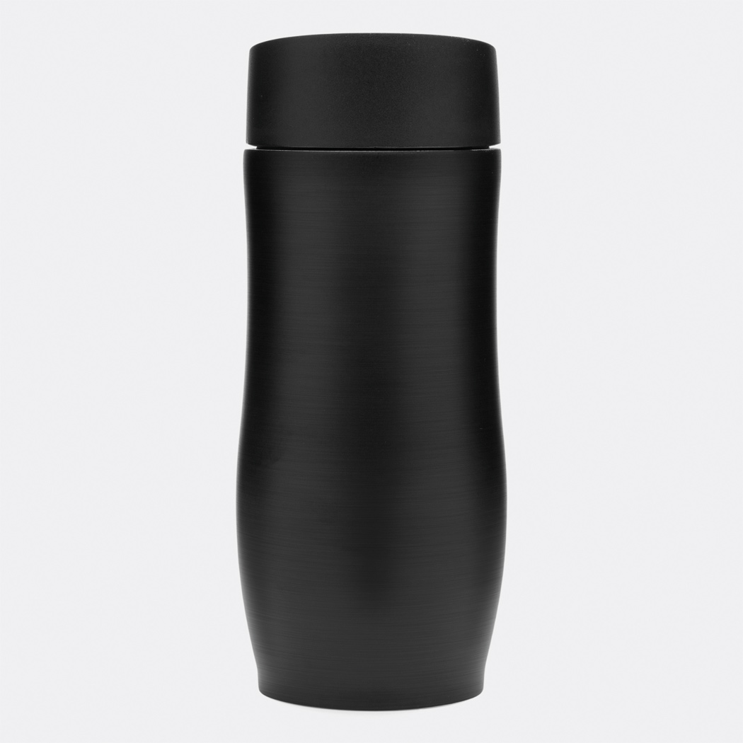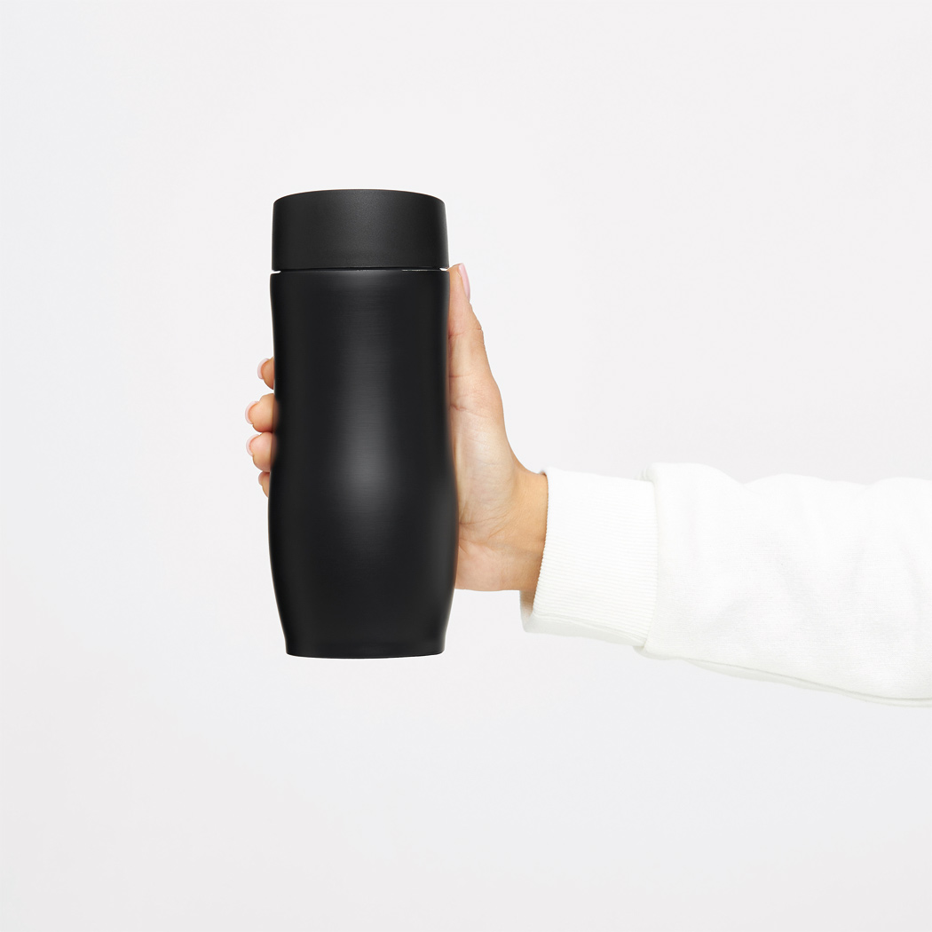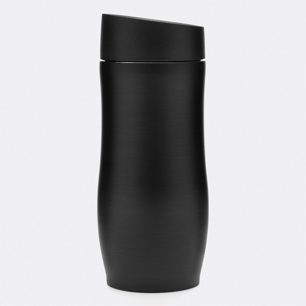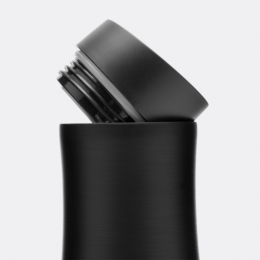 Isolierbecher CLASSICO, doppelwandig: innen und außen aus Edelstahl, Kunststoff-Deckel mit sicherem Schraubverschluss, Push-Button OPEN / CLOSE und integrierter Trinköffnung, gummierter Standfuß für gute Bodenhaftung, Füllmenge ca. 380 ml