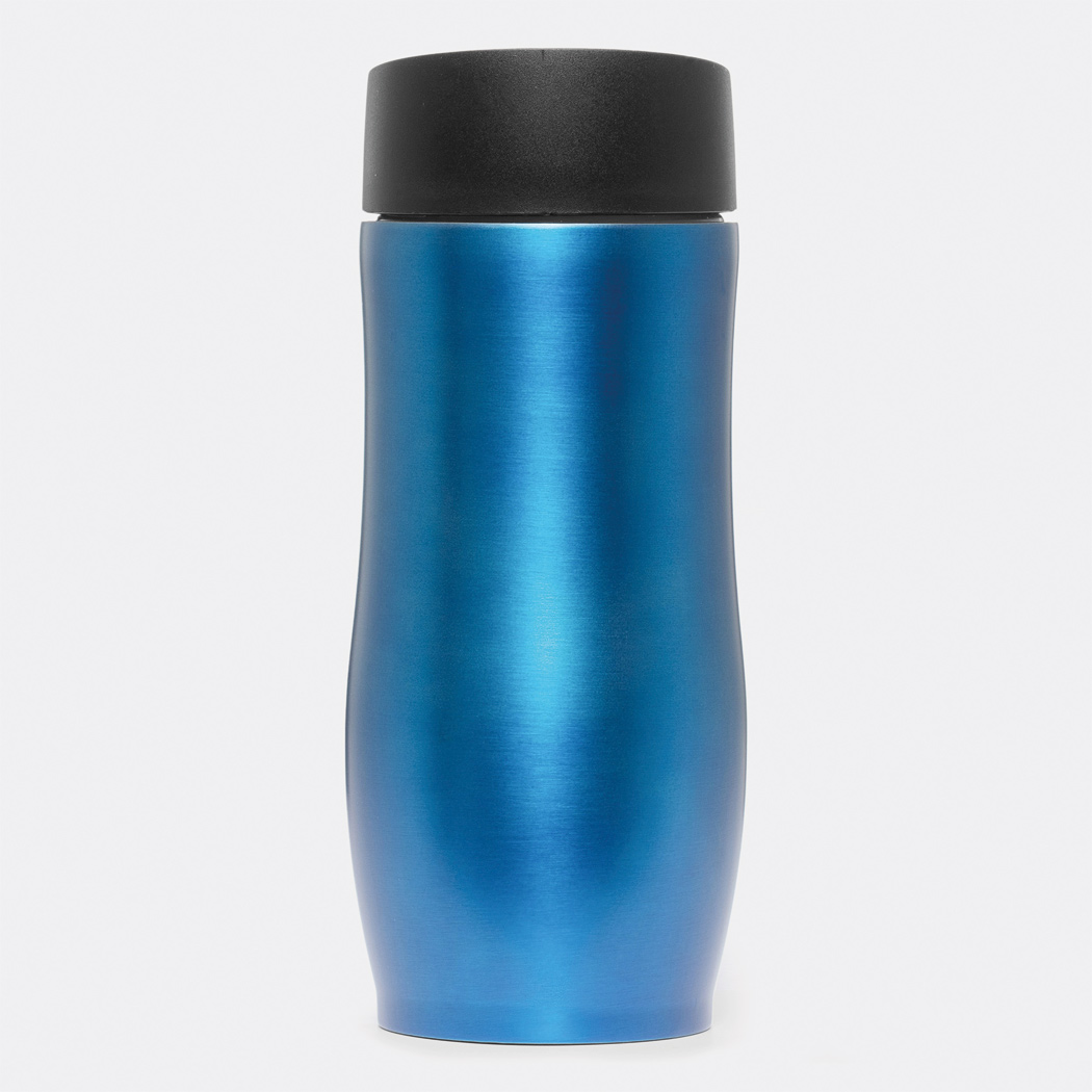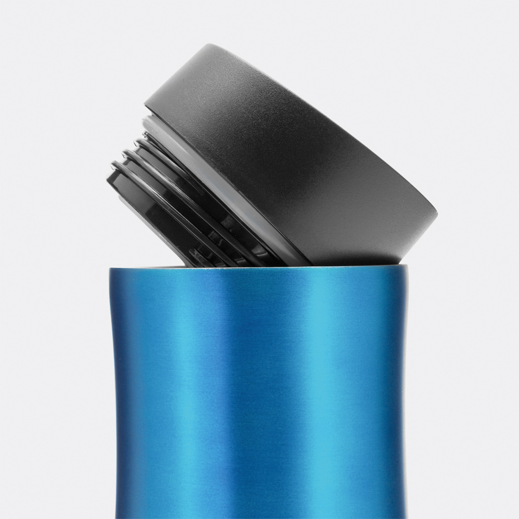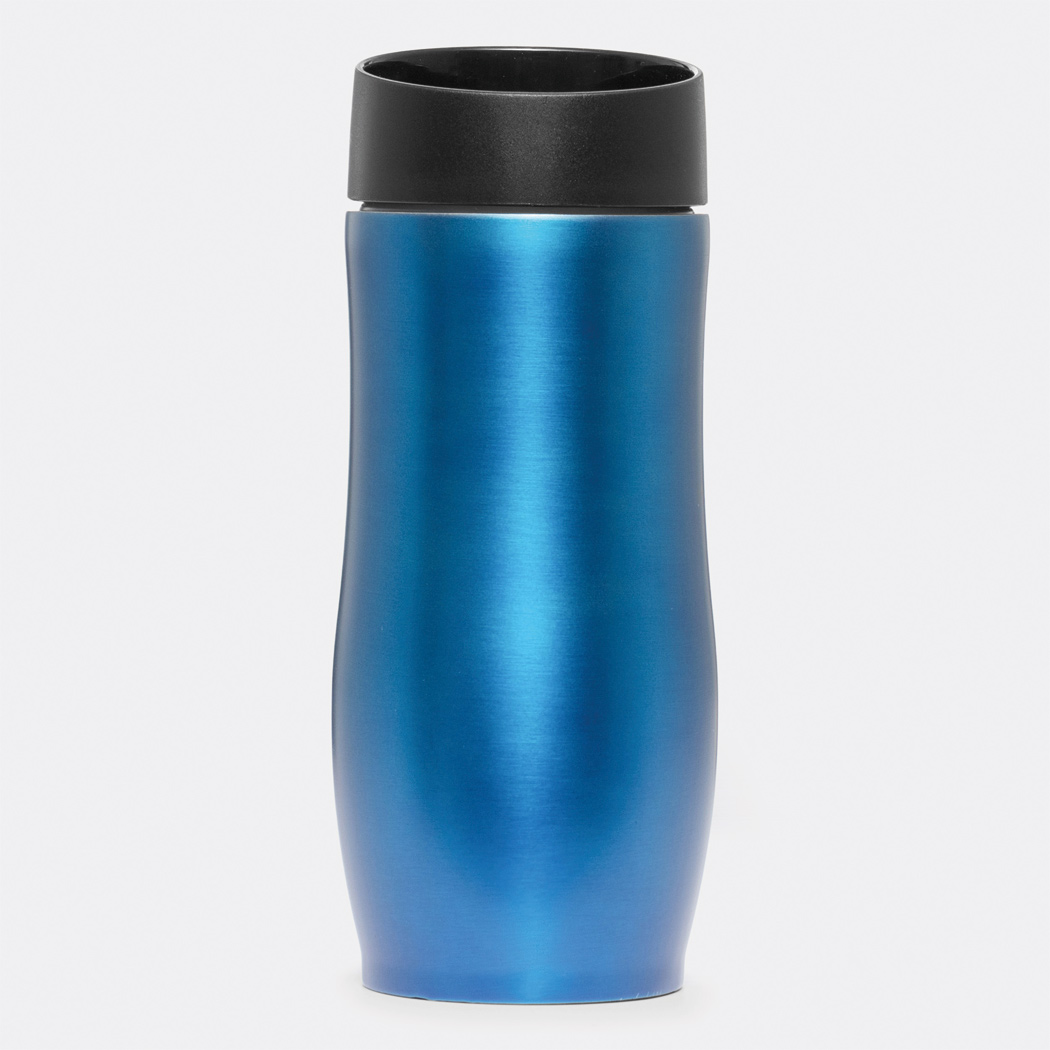 Isolierbecher CLASSICO, doppelwandig: innen und außen aus Edelstahl, Kunststoff-Deckel mit sicherem Schraubverschluss, Push-Button OPEN / CLOSE und integrierter Trinköffnung, gummierter Standfuß für gute Bodenhaftung, Füllmenge ca. 380 ml