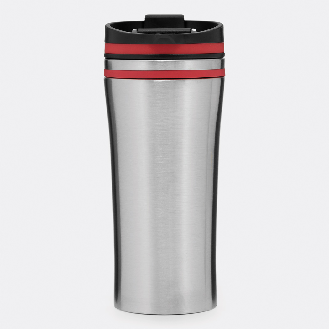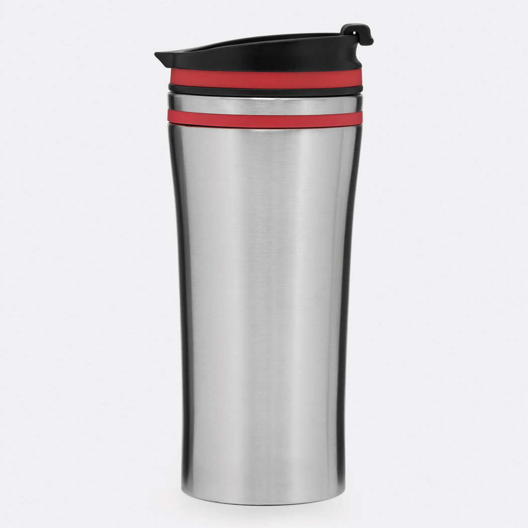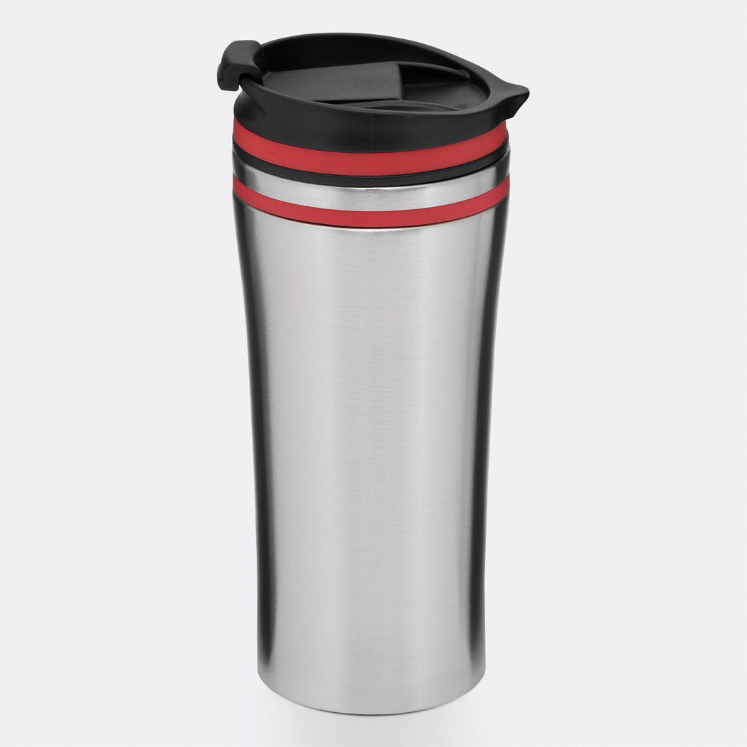Isolierbecher LIBERICA, doppelwandig: innen und außen aus Edelstahl, Deckel mit sicherem Schraubverschluss und integrierter Trinköffnung zum Aufklappen, farbige Applikation, Füllmenge ca. 400 ml