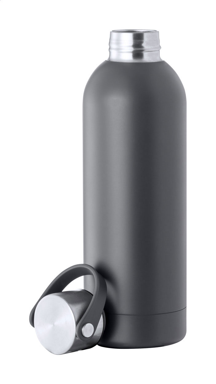 Doppelwandige vakuumisolierte Flasche aus recyceltem Edelstahl mit Trageverschluss. Füllmenge: 500 ml.