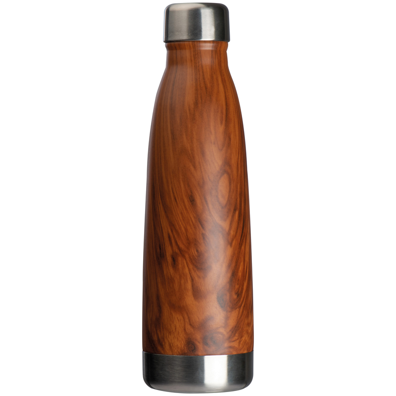 Doppelwandige Isolierflasche aus Edelstahl mit Vakuum in Holzoptik. Fassungsvermögen 500 ml - Ihre Werbung lasern wir auf die Flasche.