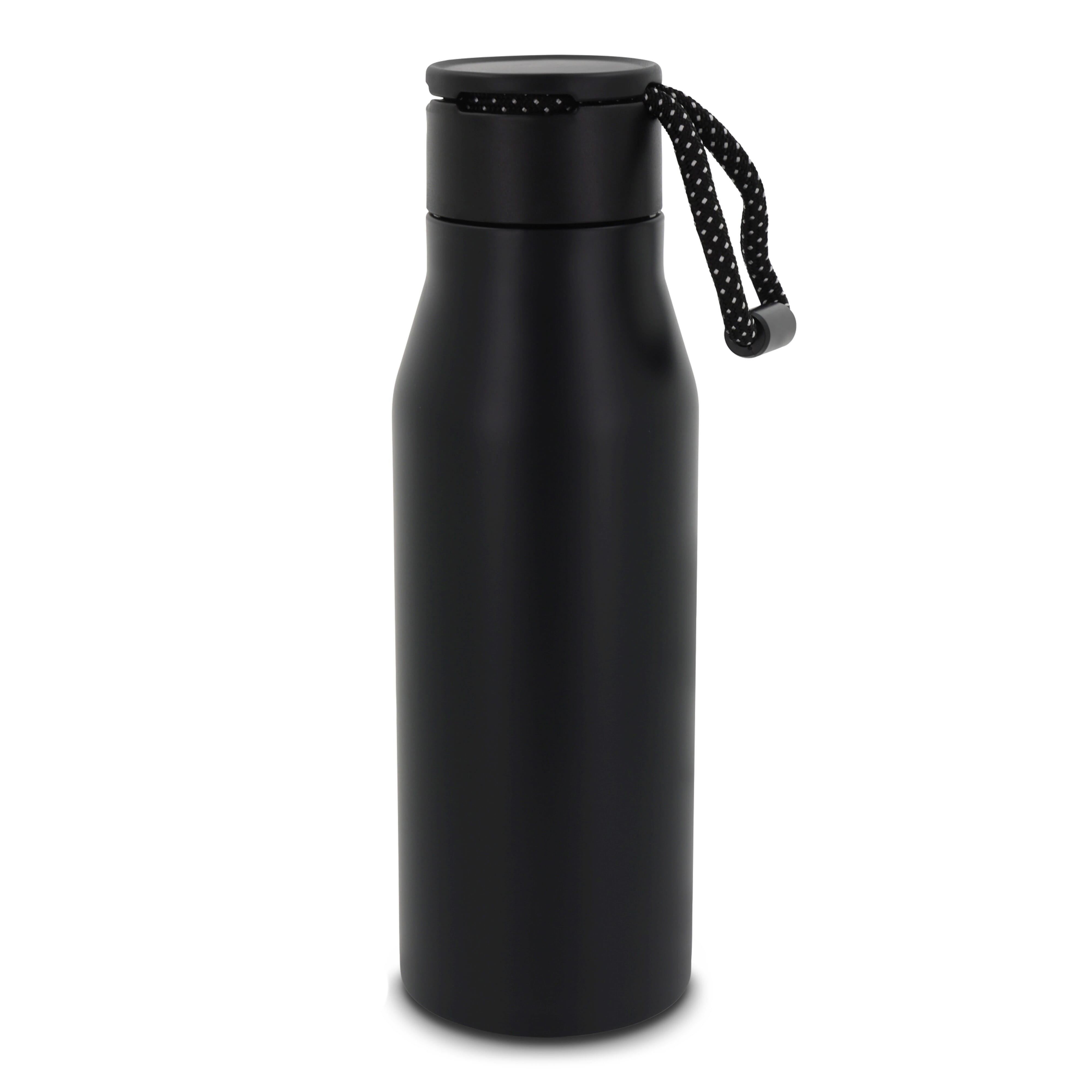 Doppelwandige Isolierflasche mit einer Trageschlaufe. Die Flasche besticht mit einem robusten Design und einem Fassungsvermögen von 600ml. Das Modell wird in einer Geschenkverpackung geliefert.