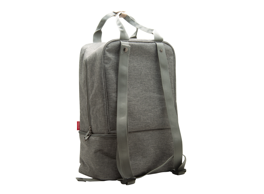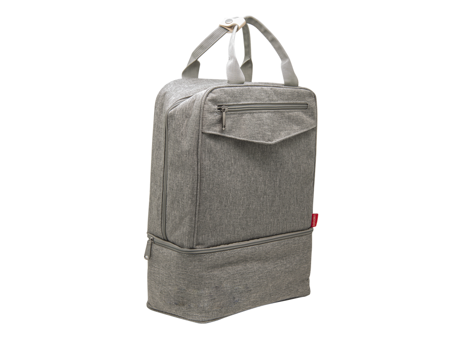 Isolierter Rucksack aus grau meliertem Wulong-Gewebe RPET. Doppeltes Fach. Aluminium-Futter. Kompatibel mit allen unseren Bento-Modellen. 3 mm dicke Isolierung.