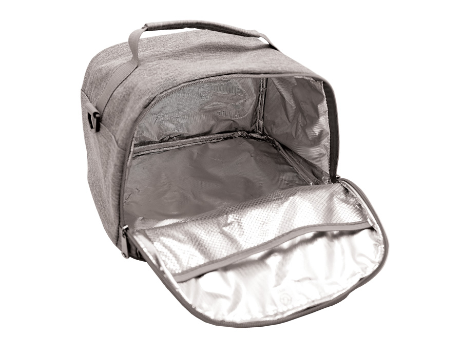 Thermotasche aus grau meliertem RPET - Wulongstoff . Kompatibel mit allen unseren Bento-Modellen. Isolierende 3mm dicke Ausführung. Schultergurt. Möglichkeit zur Einlage einer Visitenkarte. Verstärkte und gepolsterte Griffe für einen besseren Halt. Reißverschluss. Fassungsvermögen: 8 Liter. Die Vorteile in Kürze: - Passt zu allen unseren Bento-Modellen. - Elegante grau melierte Oberfläche, die zu jedem Stil passt. - Innenliegendes Netz zur Aufbewahrung von Besteck. - Verwendung von RPET (recycelte Verpackung) zur Verringerung der Umweltauswirkungen der Produktion.