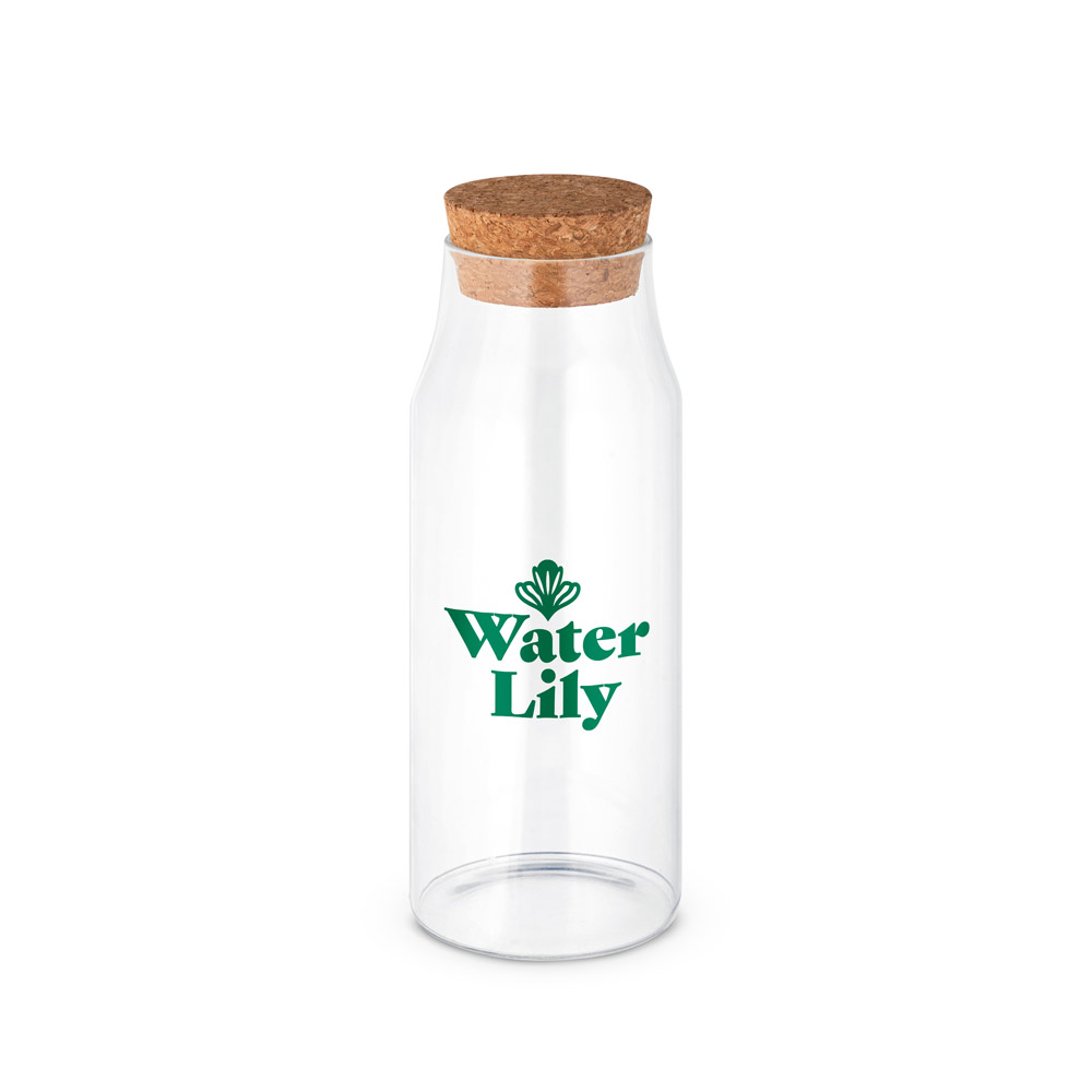 Flasche (1 L) aus Borosilikatglas mit Korkdeckel. Geliefert Geschenkschachtel aus Kraftpapier. Da das Produkt aus natürlichen Materialien hergestellt wird, können Farbe des Produkts sowie das Druckergebnis von Produkt zu Produkt unterschiedlich sein. ø83 x 215 mm
