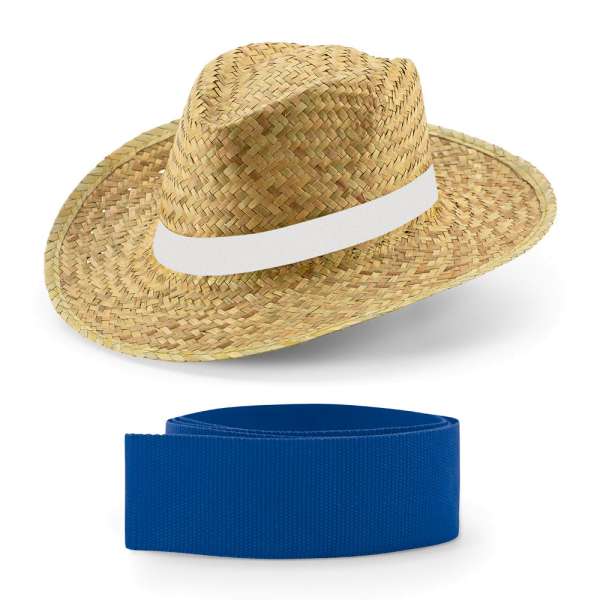 Strohhut aus Naturstroh. Hutband aus 100% Polyester 650 x 24 mm. Größe: ca. 58 cm