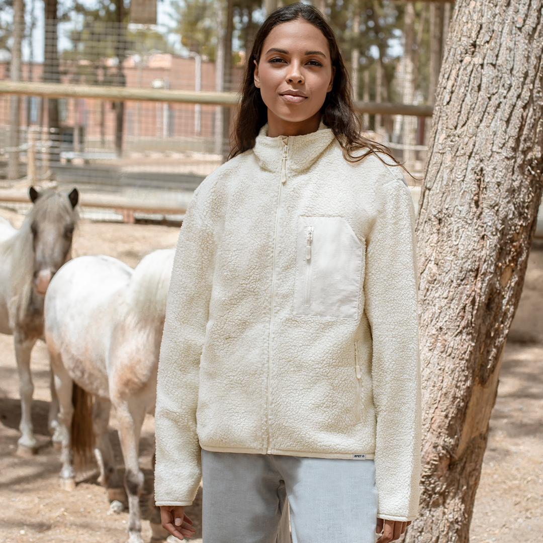 Jacke aus warmem 450g / m2 RPET-Sherpa-Material, mit farblich passendem Fleece-Futter. Weicher Griff und Fleecestil. Brusttasche aus RPET-Polyester mit Reißverschluss und passendem Reißverschluss-Zipper. Mittlere Reißverschlusstasche aus Nylon auf der Rückseite und Seitentaschen mit farblich passenden Zippern für einen einzigartigen Stil. Inklusive Öko-Label am unteren Saum des Kleidungsstücks. Erhältlich in verschiedenen Farben und in den Größen XS, S, M, L, XL, XXL.