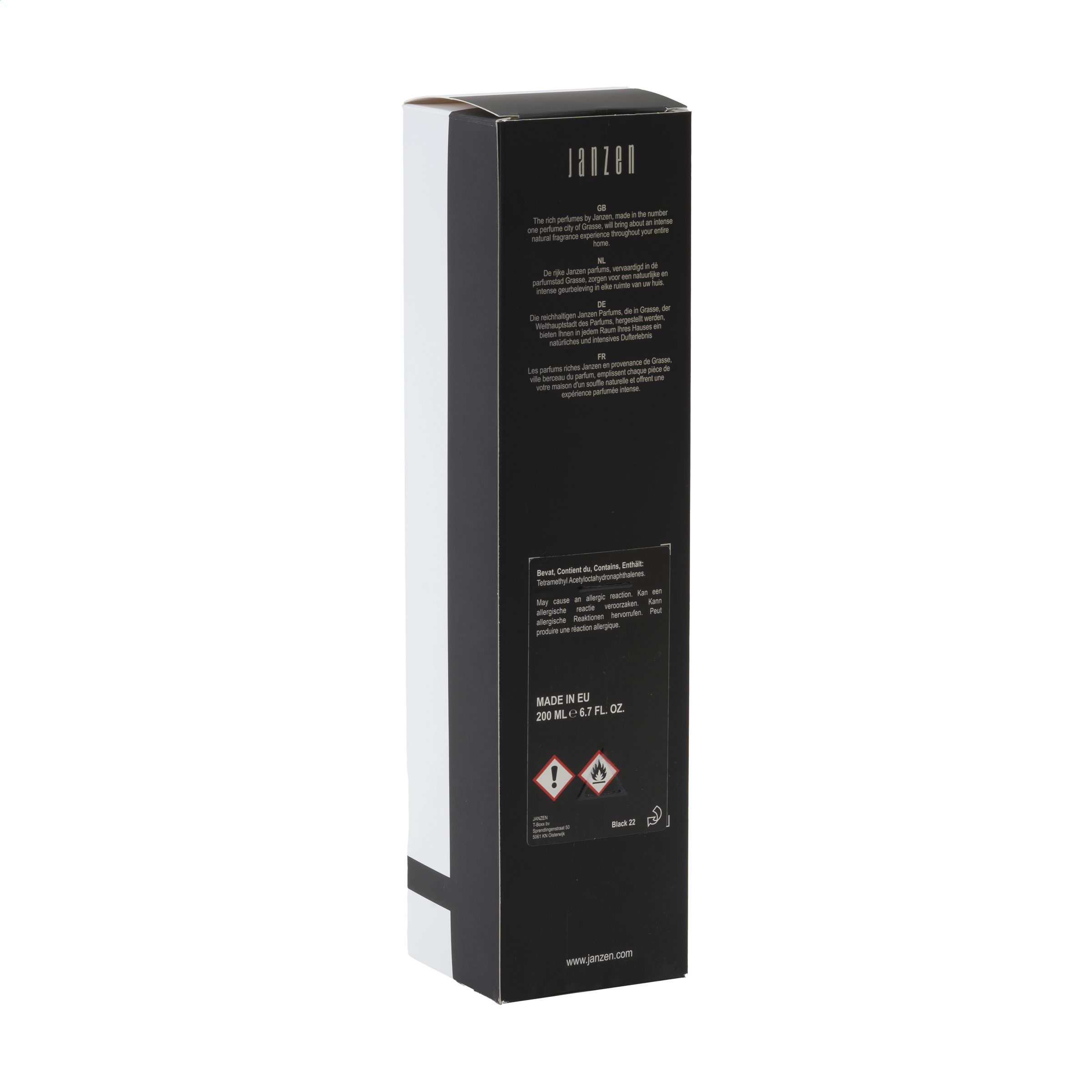 Duftstäbchen der Marke Janzen in der Duftnote Black 22. Die Stäbchen aus speziellem Holz bieten Ihrem Lieblingsparfüm die Chance, sich im ganzen Haus auszubreiten. Für alle Räume geeignet: vom Schlafzimmer über die Toilette und das Arbeitszimmer bis zur Küche. Mit der Anzahl der Stäbchen können Sie selbst die Intensität des Duftes festlegen. Ein frisch-warmer Duft, der eine perfekte Balance zwischen Leichtigkeit und Intensität sowie femininen und maskulinen Noten schafft. Black 22 ist ein reichhaltiges Bukett aus Bergamotte und scharfen Gewürzen, tropischer Baumrinde und süßer Tonkabohne, die auch als "verbotene Frucht" bekannt ist. Dieser Flacon aus Glas enthält 200 ml Parfümöl und wird mit Stäbchen geliefert. Pro Set in einem Geschenkkarton verpackt. Verpackt pro Set.