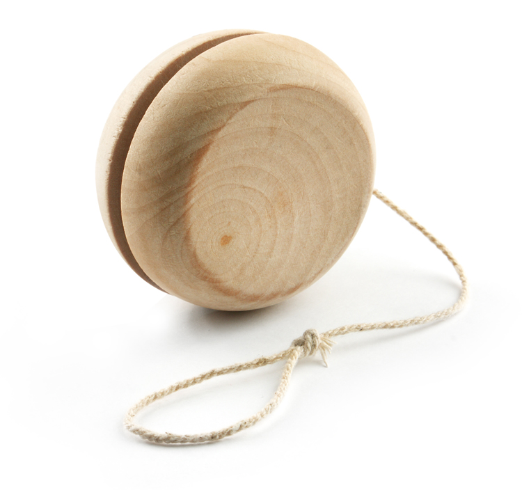 Klassisches Jo-Jo aus Holz. Rohe Oberfläche, unlackiert.
