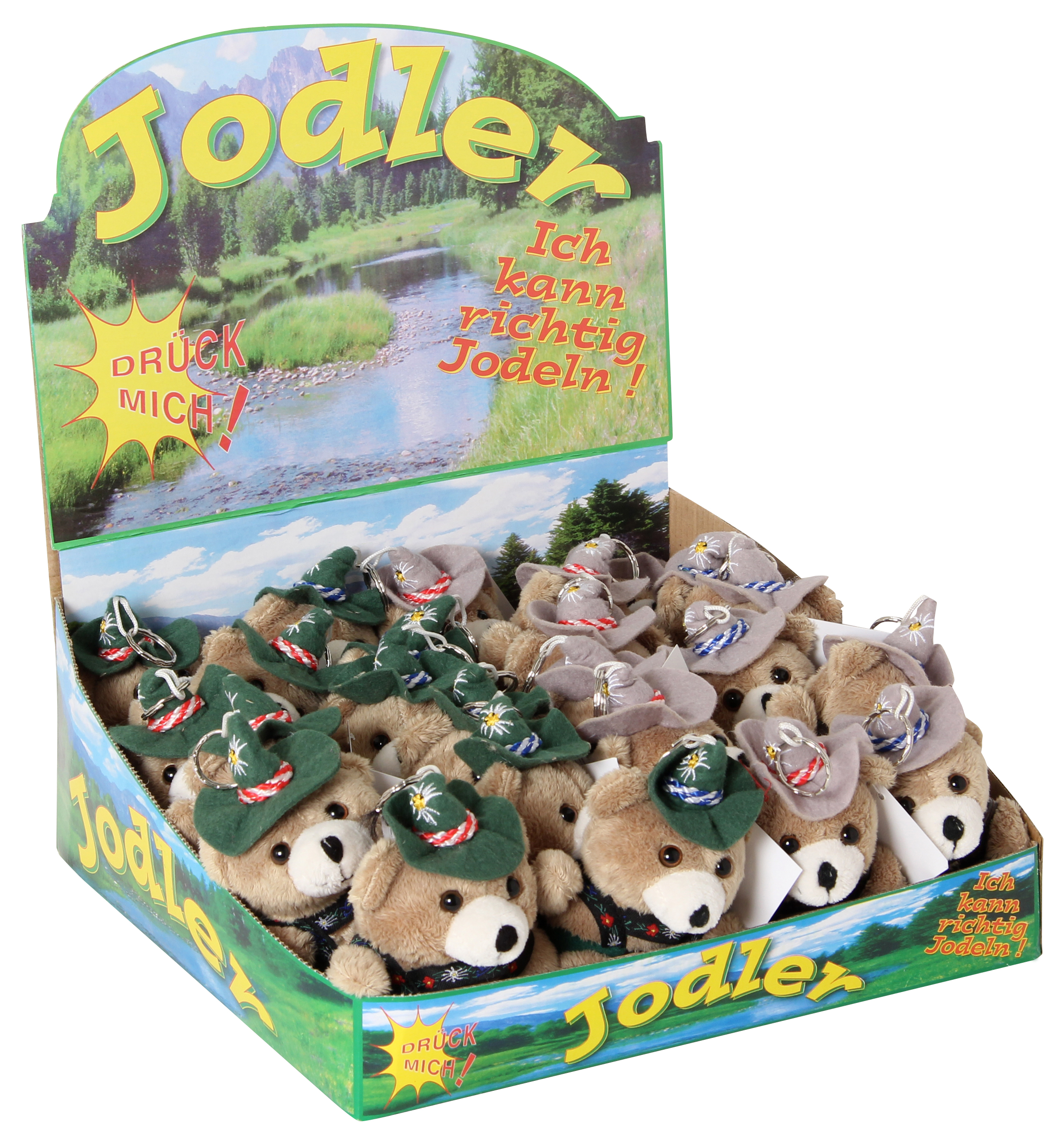 Der Bär ist ca. 12 cm groß und trägt Tracht. Mit Batterie. Drückt man das Bärenbäuchlein, jodelt der kleine Jodel-Bärli wild drauflos und will damit seinem Freund, dem Stoffl im Nachbartal mitteilen, dass das Leben im Bayernland so schön ist, wenn man jodeln kann, weil einen dann jeder liebt, besonders die Nordlichter. (Hinweise zur Batterieentsorgung liegen der Warensendung bei, oder vorab abzurufen, unter: http://1111ideen. de / content/25-Batterie-Hinweis)