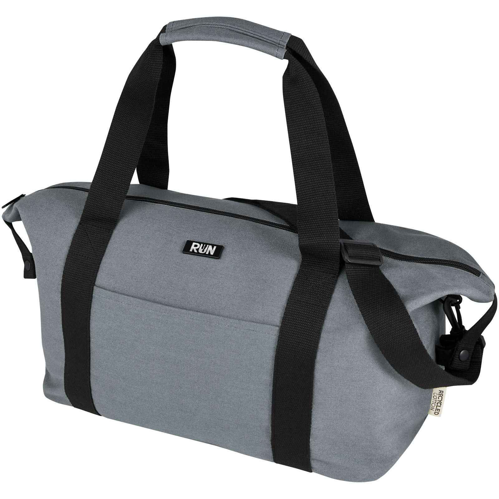 Die Joey Sporttasche mit 25 L besteht aus GRS recyceltem Canvas und GRS RPET-Futter, und verfügt über ein geräumiges Hauptfach mit Reißverschluss und eine Innentasche mit Reißverschluss für eine sichere Aufbewahrung. Sie hat außerdem eine offene Vordertasche und eine weitere Tasche mit Reißverschluss auf der Rückseite für Trolleys. Sie kann entweder an den verstärkten Gurtgriffen oder am abnehmbaren und verstellbaren Schultergurt getragen werden. Die dekorative Metallplatte kann ein Logo durch ihre dezente und matte Oberfläche zum Leuchten bringen.