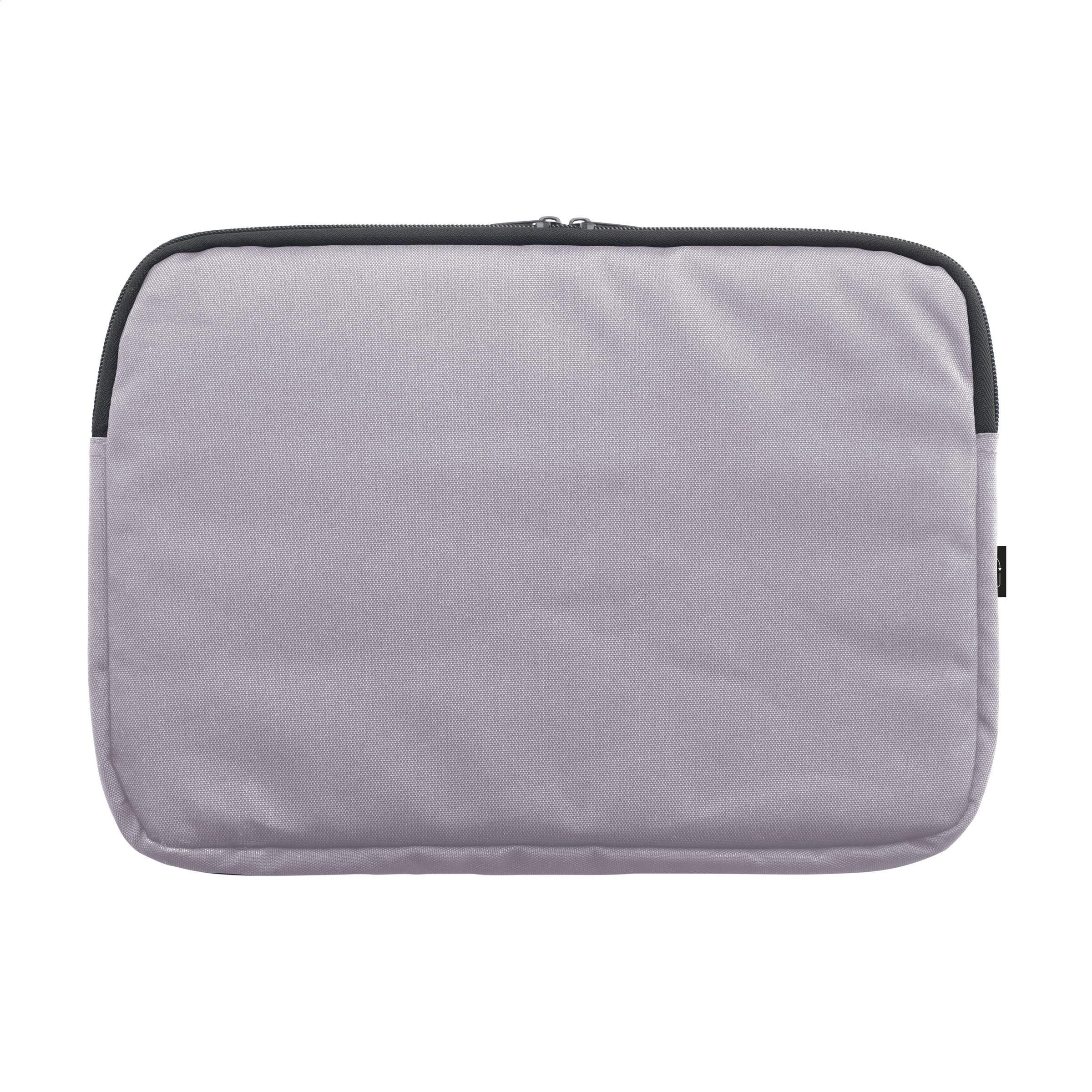 Robuste 13-Zoll-Laptoptasche aus 600D RPET-Polyester. Zum Schutz des Laptops ist das gefütterte Hauptfach mit einem Reißverschluss und Schaumstoff ausgestattet. Mit zusätzlichem Reißverschlussfach auf der Vorderseite.