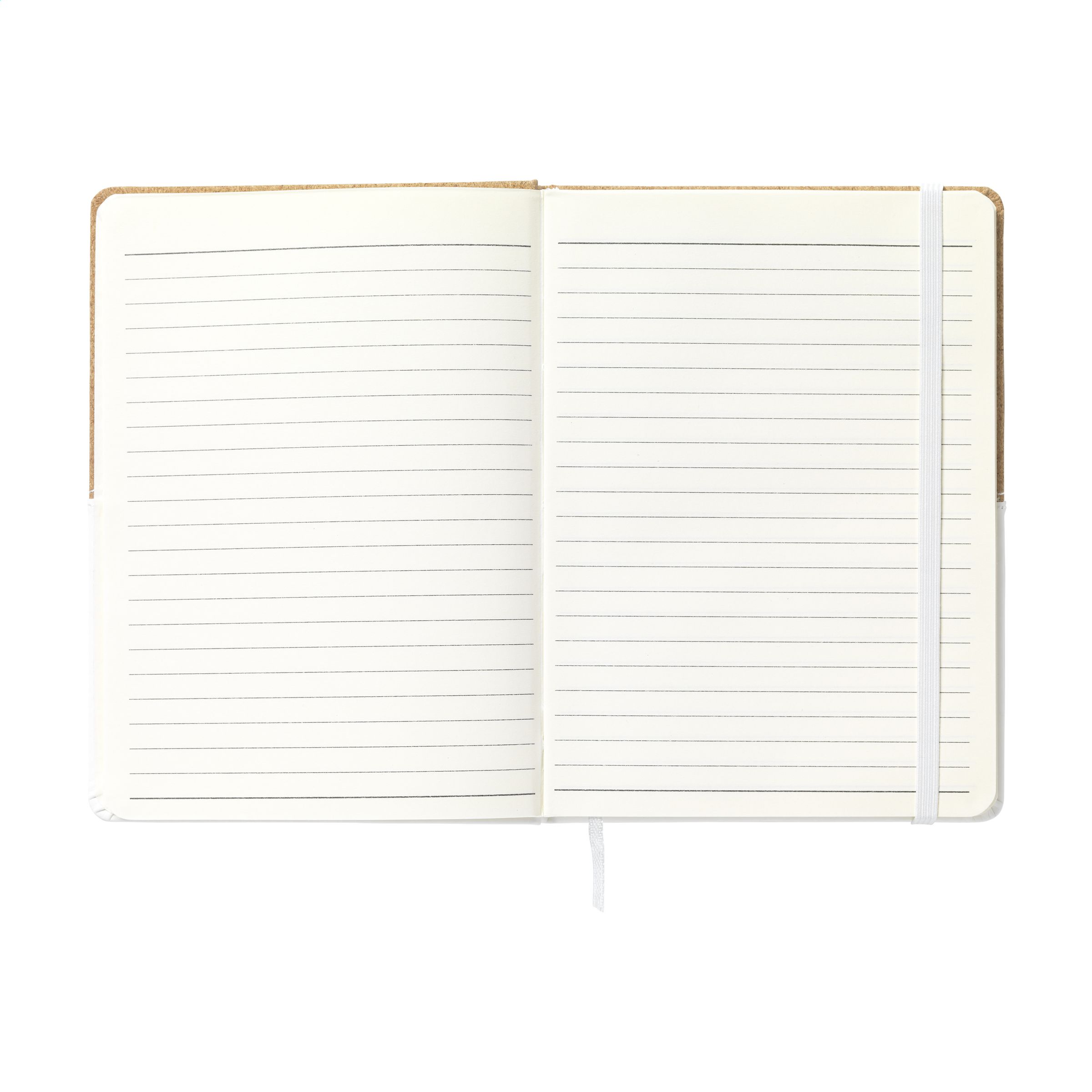 Duo-Stil Notizbuch aus Kork und Lederimitat in handlicher und praktischer Ausführung mit ca. 72 Blatt/144 Seiten cremefarbenem, liniertem Papier (70 g / m²) und elastischem Verschluss.