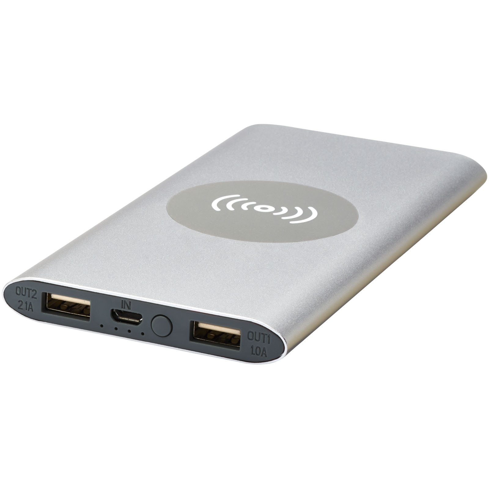 8000 mAh Powerbank mit Aluminiumgehäuse. Unterstützt kabelloses Laden mit 5 W und wird auch mit Mikro-USB-Ausgang geliefert, um das Aufladen per Kabel zu ermöglichen. Mit dem 8000 mAh Lithium-Polymer-Akku kann ein Smartphone mehrmals vollständig aufgeladen werden. Leistungsanzeige, die jederzeit den Energiepegel anzeigt. Mikro-USB-Anschluss: 5 V/2 A Ausgang: 5 V/2A. Kabelloser Ausgang 5 W. Inklusive PVC-freiem TPE Kunststoff Ladekabel. Lieferung in einer Standard-Geschenkbox.