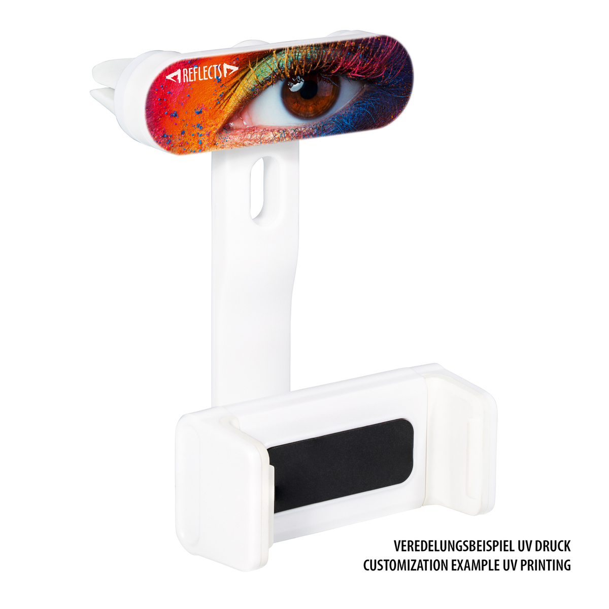 Die Smartphonehalterung zur Befestigung im Lüftungsschlitz Ihres Autos hat eine schöne, große Werbefläche, die sofort ins Auge fällt. Passend für alle Smartphones von 3,5-6,0 Zoll