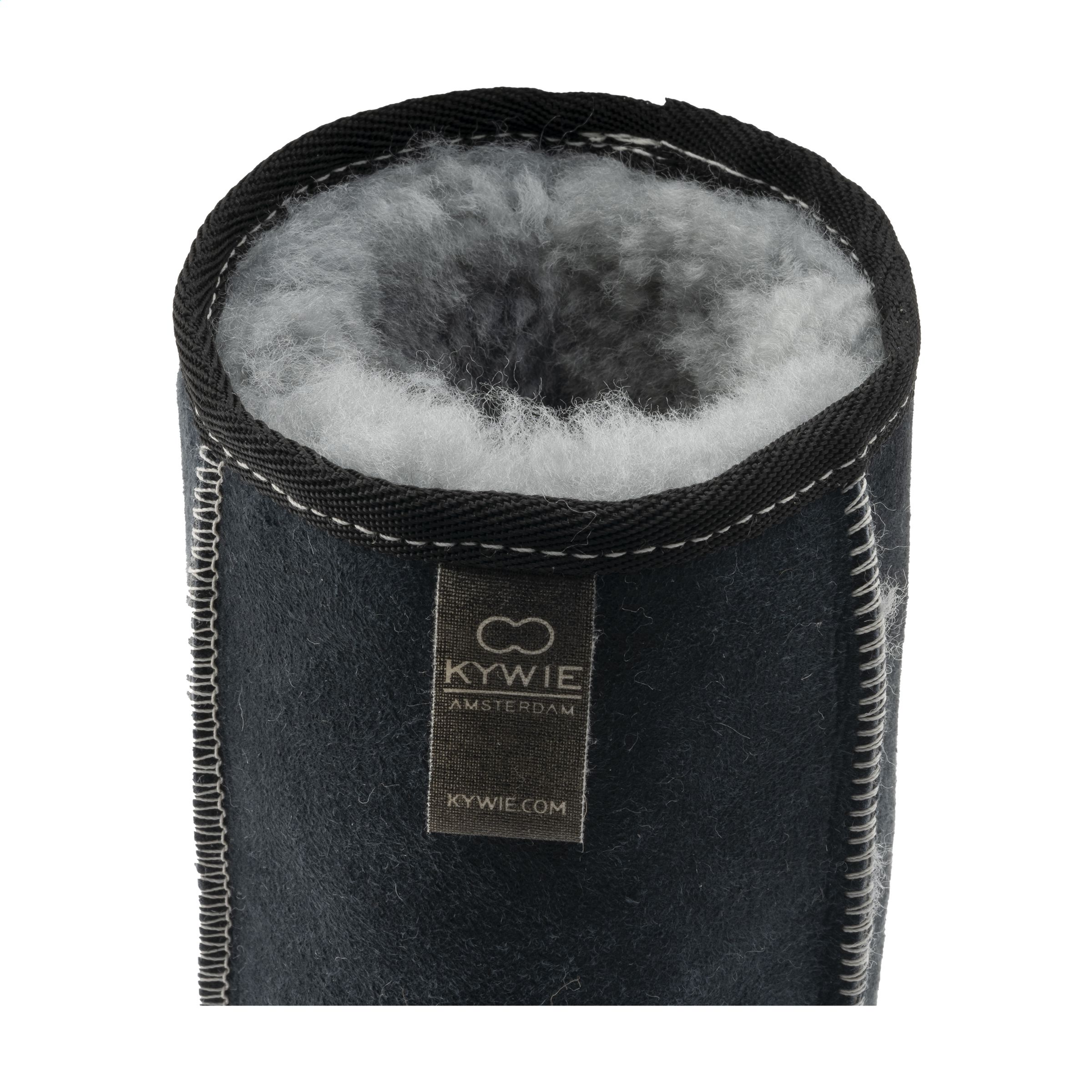 Dieser Weinkühler der Marke KYWIE ist aus 100% natürlicher Schafwolle von Texel-Schafen handgefertigt. Dieser Kühler hält Ihre Flasche Wein oder Champagner wirklich kühl – besser als jedes andere Material, mit Ausnahme von Eis. Die feine Wolle auf der Innenseite ist eine natürliche Bio-Isolationsschicht, welche die (kalte) Luft im Inneren des Weinkühlers hält. Eine vorgekühlte Flasche Wein bleibt so etwa 4 Stunden lang kalt. Dieser besondere Weinkühler ist leicht und faltbar, schützt die Flasche und liegt perfekt in der Hand. Darüber hinaus ist das Material schmutzabweisend. Geeignet für 0,7-Liter-Weinflaschen und 1-Liter-Wasserflaschen. Praktisch für zu Hause und unterwegs, im Sommer und im Winter. Da die Kühler aus echter, natürlicher Schafwolle handgefertigt werden, können Farbe, Textur und Markierungen leicht variieren. Dies trägt dazu bei, dass jeder Weinkühler einzigartig schön ist und einen individuellen Charakter ausstrahlt. Ein intelligentes und originelles Geschenk. Niederländisches Design. Made in Holland. Pro Stück in einer Baumwolltasche.