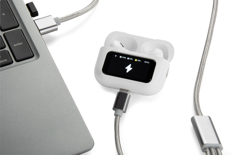Die kabellosen SENSIFY-Kopfhörer sind ein modernes Premium-Gadget, das die Funktionalität von In-Ear-Kopfhörern mit einem fortschrittlichen Gehäuse mit Farb-Touchscreen-Display kombiniert. Es ermöglicht Ihnen, die Lautstärke zu regeln, die Geräuschunterdrückung (ANC / ENC) zu aktivieren, in den Umgebungsgeräuschmodus (Ambient) zu wechseln und den Ladestand anzuzeigen. Der Kopfhörer bietet eine Betriebsdauer von bis zu 4 Stunden, und das 300-mAh-Gehäuse ermöglicht das mehrfache Aufladen. Das Gerät lässt sich über Bluetooth mit einem Smartphone verbinden und unterstützt die Touch-Steuerung. Das Produkt ist in einer ästhetisch ansprechenden, minimalistischen Premium-Verpackung verpackt. Das Aufladen erfolgt über USB-C (Kabel nicht im Lieferumfang enthalten).