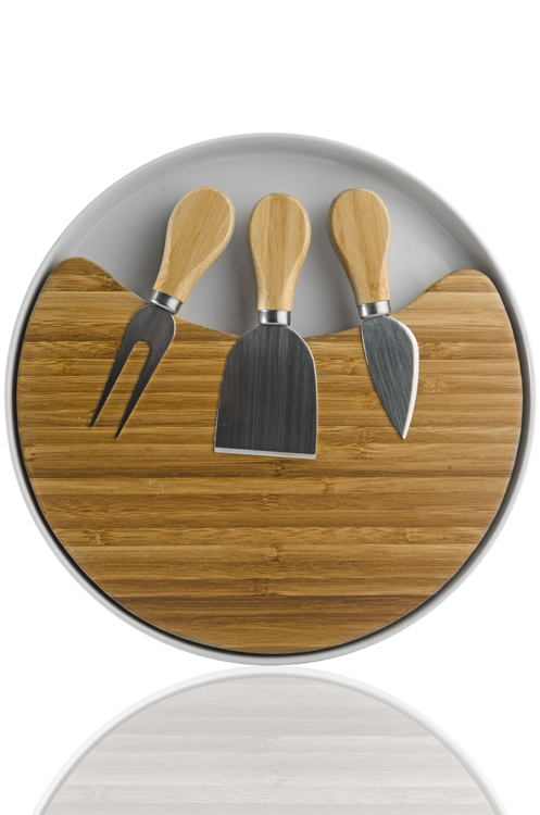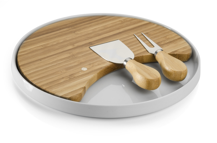 Die Käseplatte CHEDDAR ist ein geschmackvoller Set für das Servieren von Käse. CHEDDAR ist wichtig bei Treffen mit einem Glas Wein. Das Set enthält eine Bambusplatte, Keramik-Untersetzer und drei Messerchen.