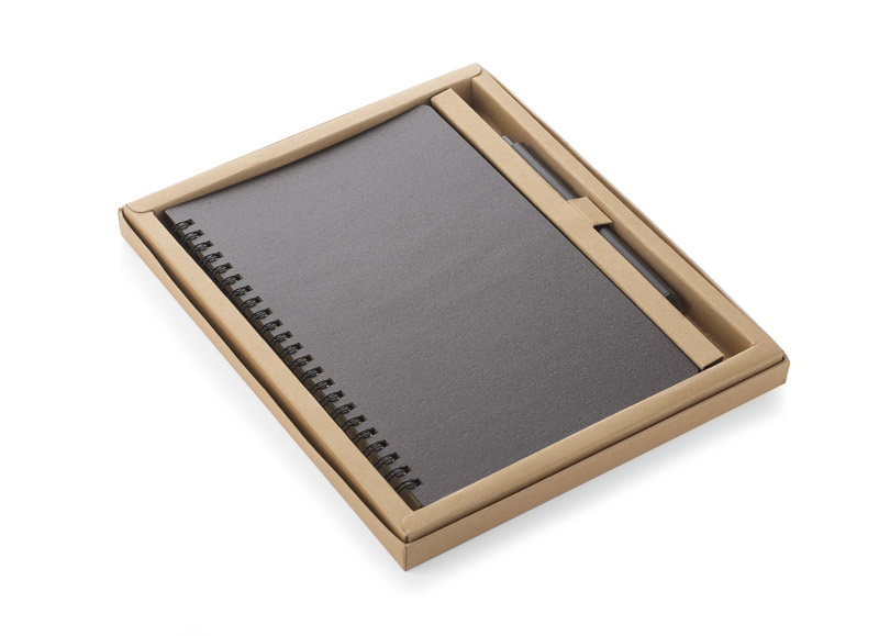 Das Notizbuch KOPI ist eine perfekte Idee für ein umweltfreundliches Geschenk. Der Einband des Notizbuches und der Kugelschreiber bestehen aus Kunststoff, der zu 40% mit Kaffeebohnen vermischt ist, so dass viel weniger Kunststoff verwendet wurde. Das Notizbuch enthält 70 Blätter in Linie aus braunem Recyclingpapier. Zum Set gehört ein Kugelschreiber mit blauer Mine. Alles verpackt in einer schönen braunen Pappschachtel, die dem ökologischen Trend perfekt entspricht.