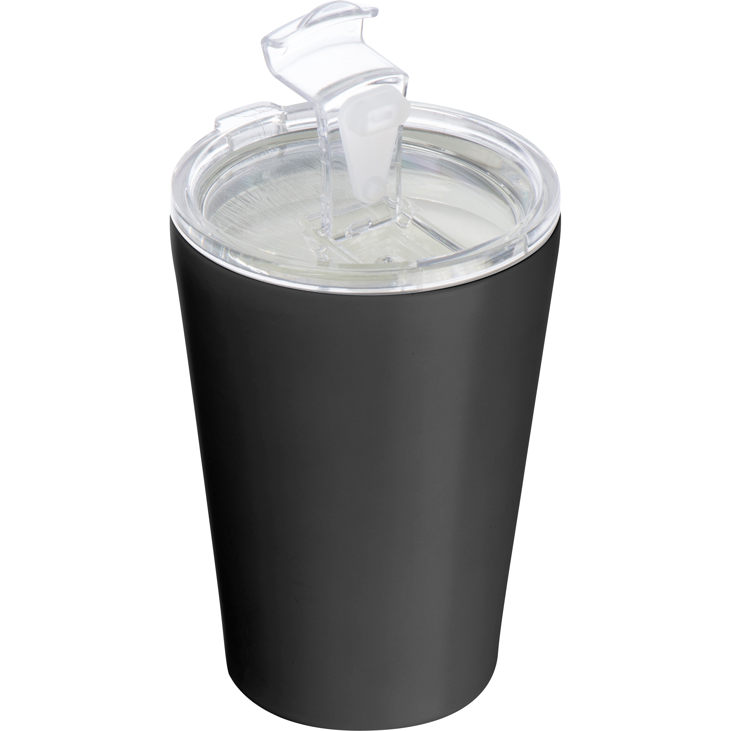 Doppelwandiger Vakuum Isolierbecher aus Edelstahl mit Keramikbeschichtung innen und einem Fassungsvermögen von 350 ml. Er verfügt über einen auslaufsicheren transparenten Kunststoffdeckel mit verschließbarer Trinköffnung. Ihre Werbung bringen wir mittels einer Lasergravur auf dem Becher an.